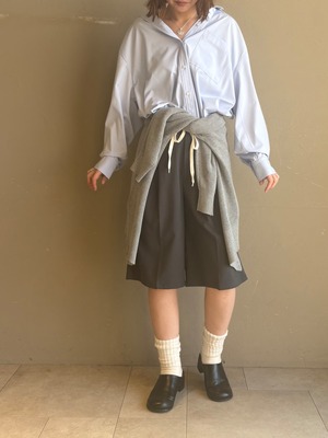 首元は少しゆったりしたデザインなので顔周りがすっきり見えして、オーバーサイズなのでボディラインを拾わず体型カバーができます。