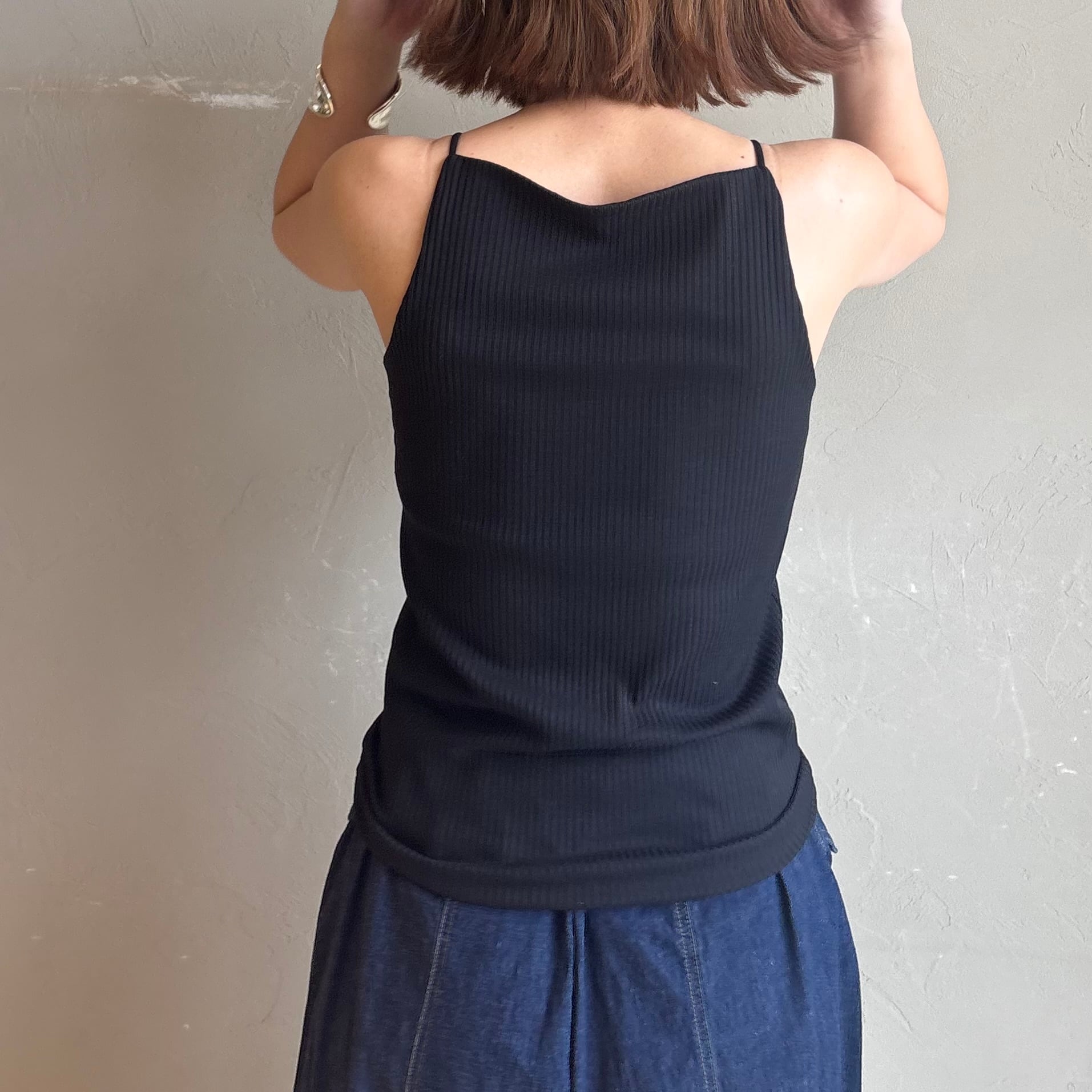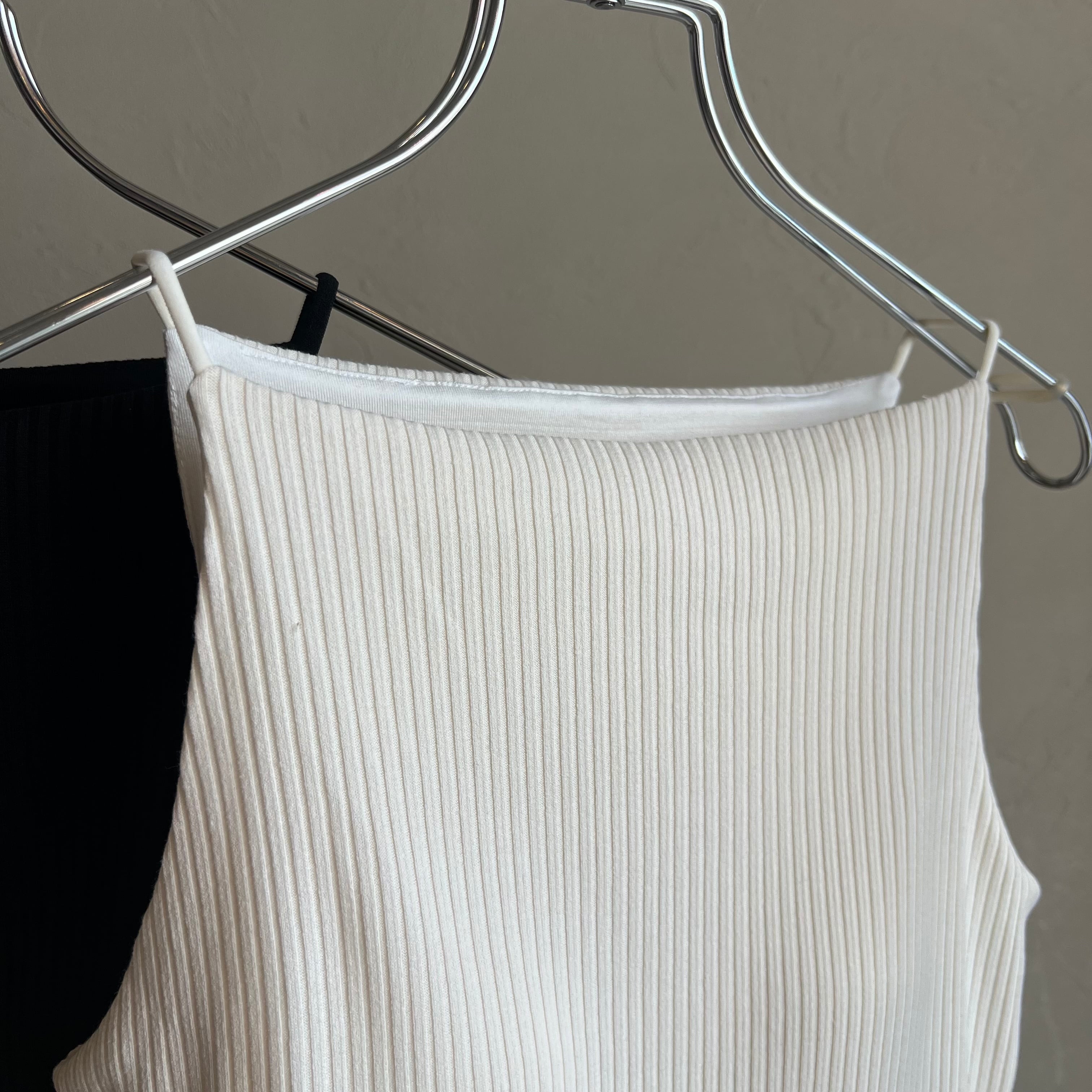 細リブの縦ラインが体をきれいに見せてくれて華奢ストラップ&背中の抜け感で後ろ姿まで可愛いんです。