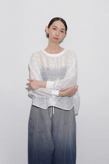 一枚ではもちろん、インナーとのレイヤードで透け感を楽しめる季節感のあるアイテムです。