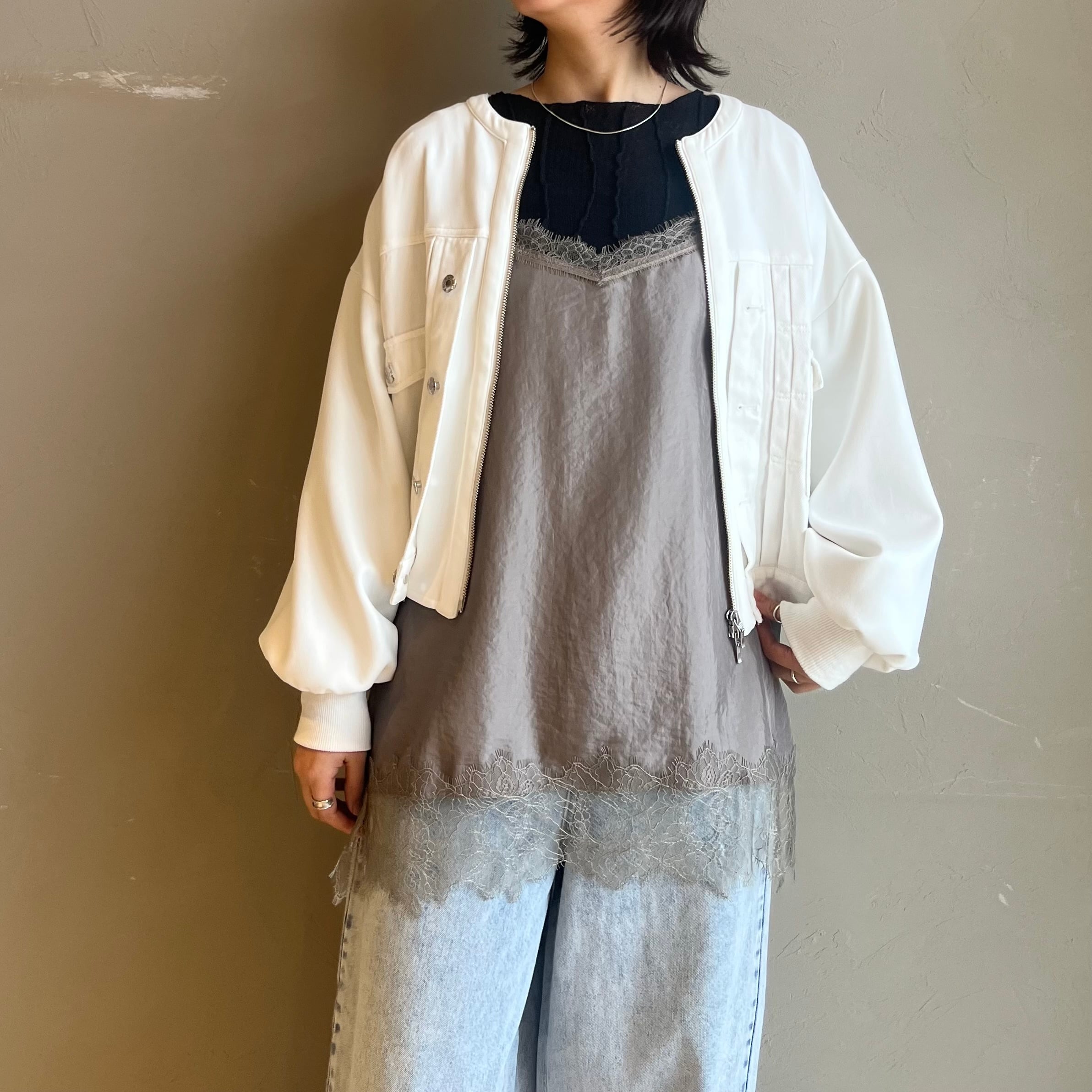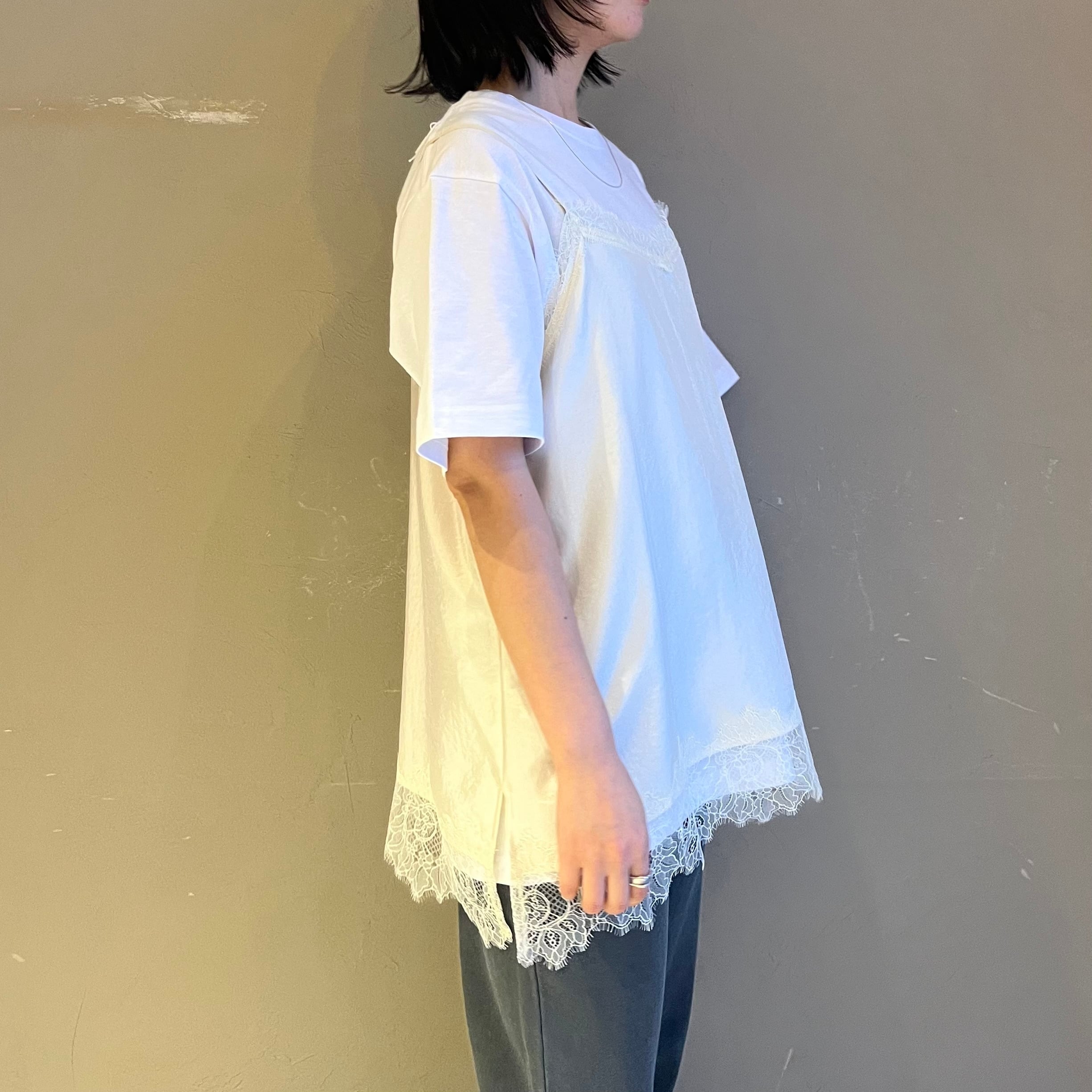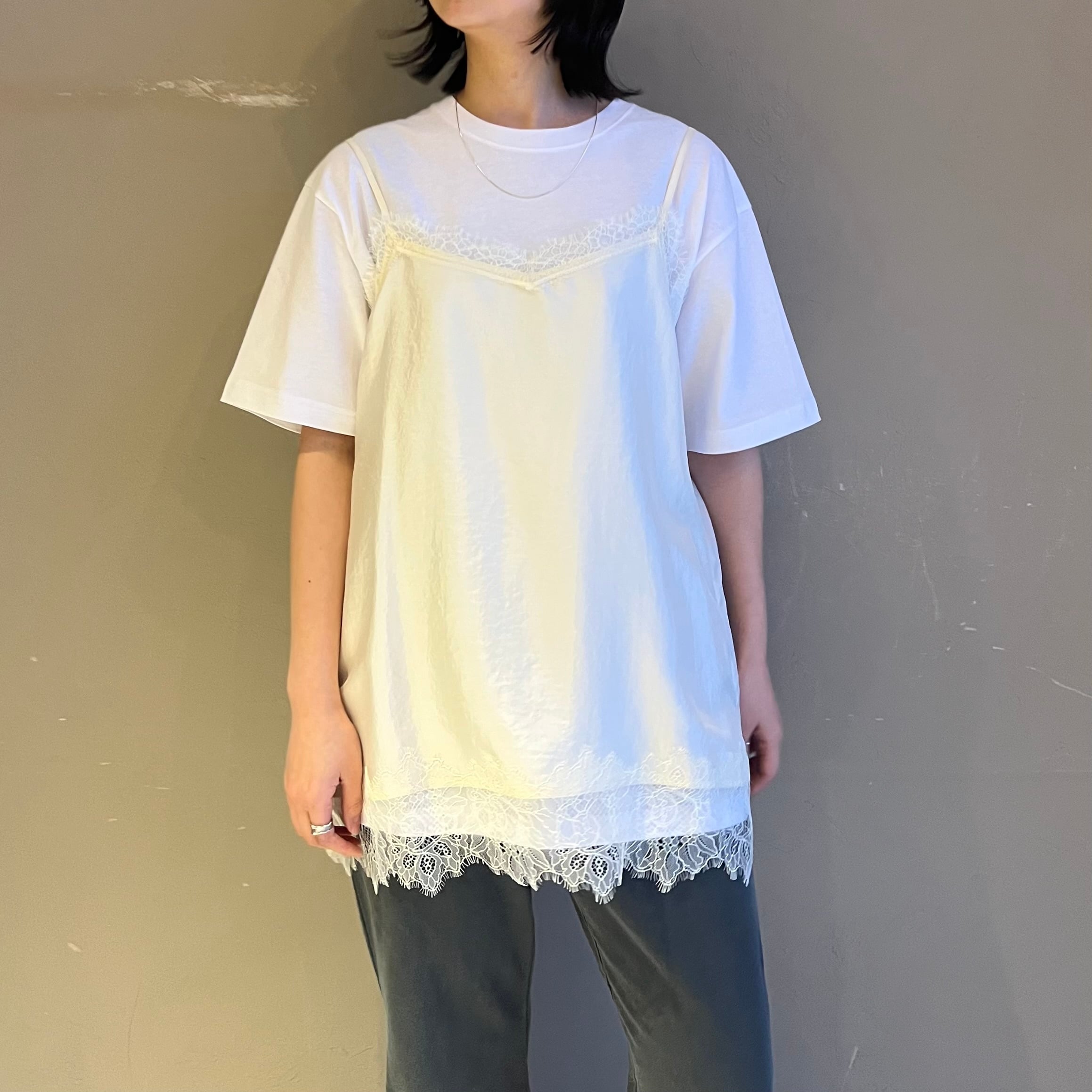 繊細レースをあしらった裾で、重ねるだけで奥行きのある着こなしに。