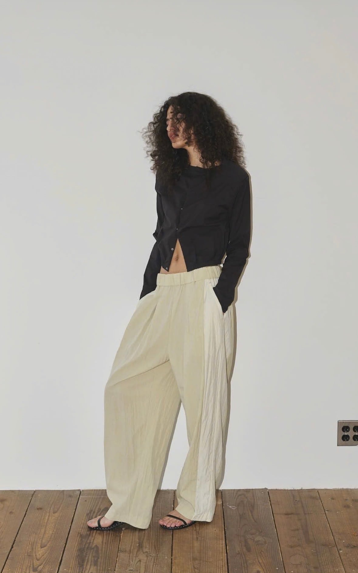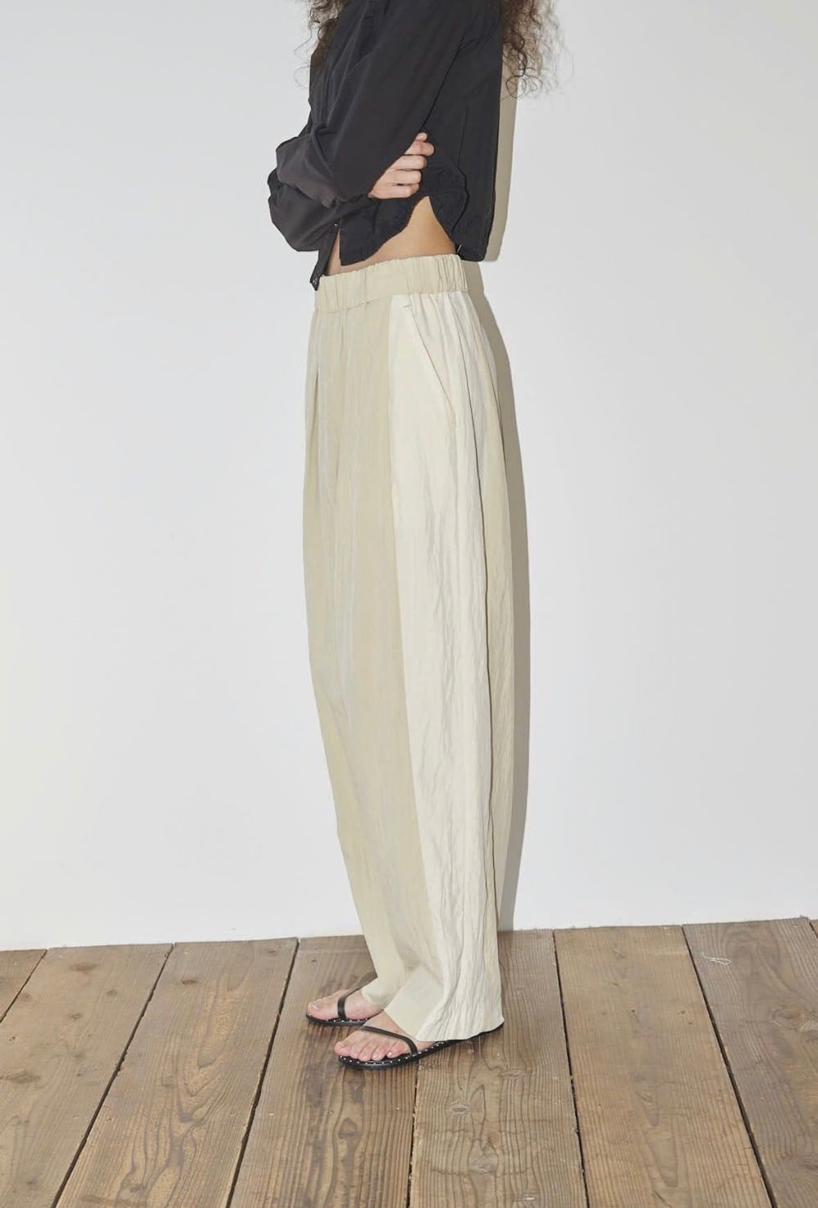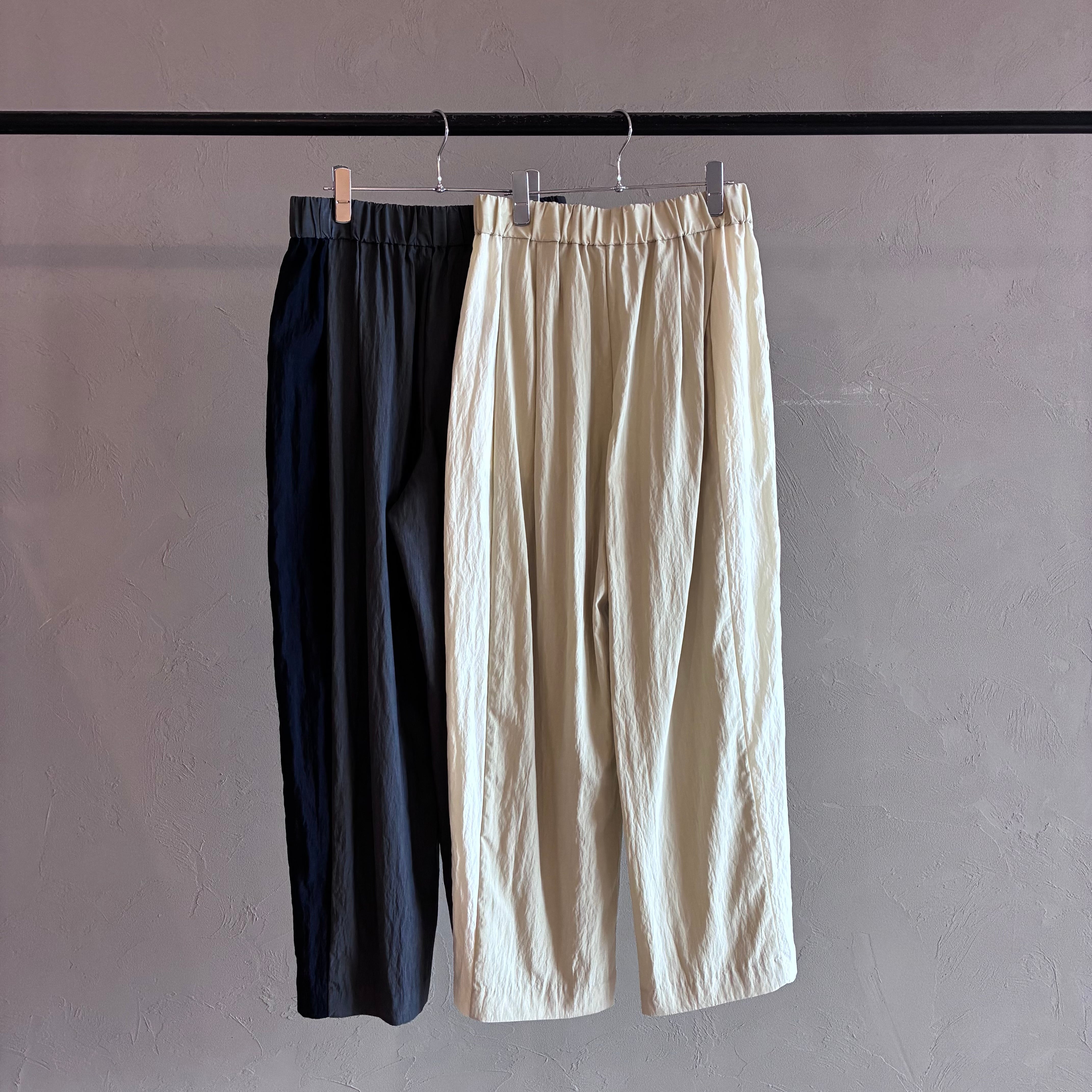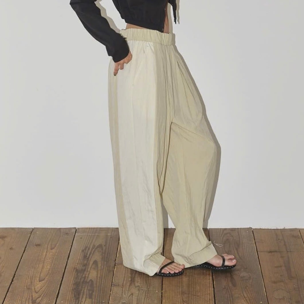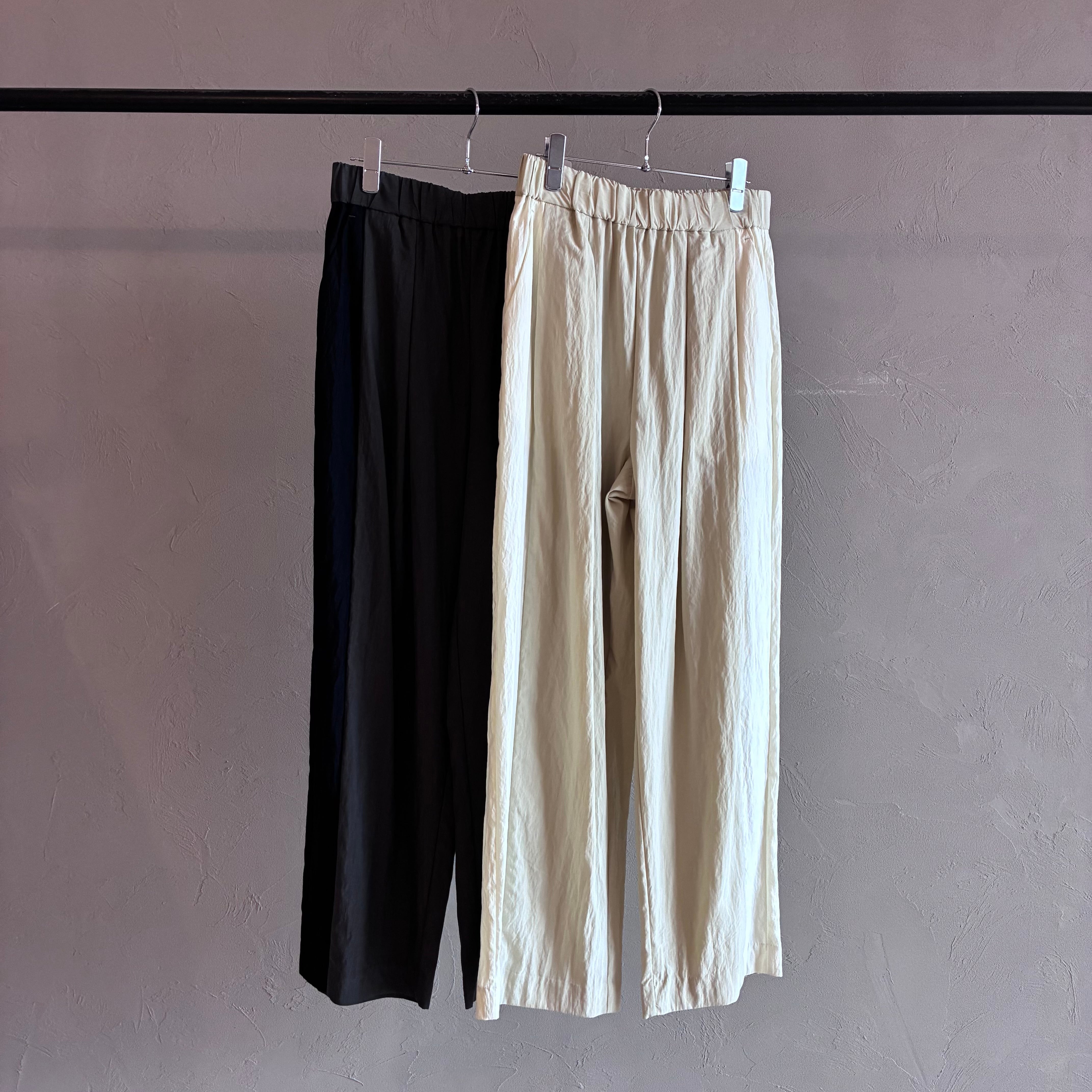 ウエストは総ゴム仕様ながら、リラクシーな着心地とすっきりとしたシルエットを両立しました。