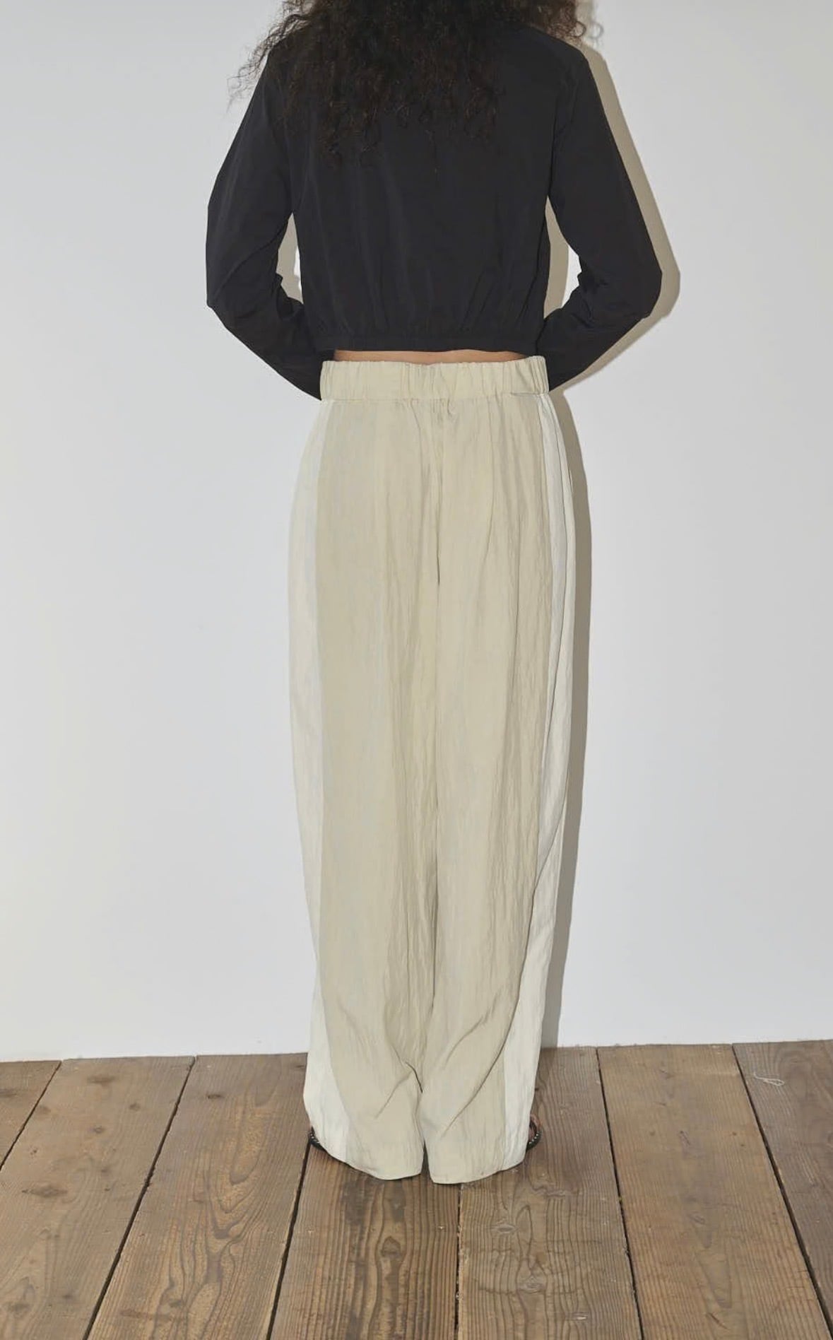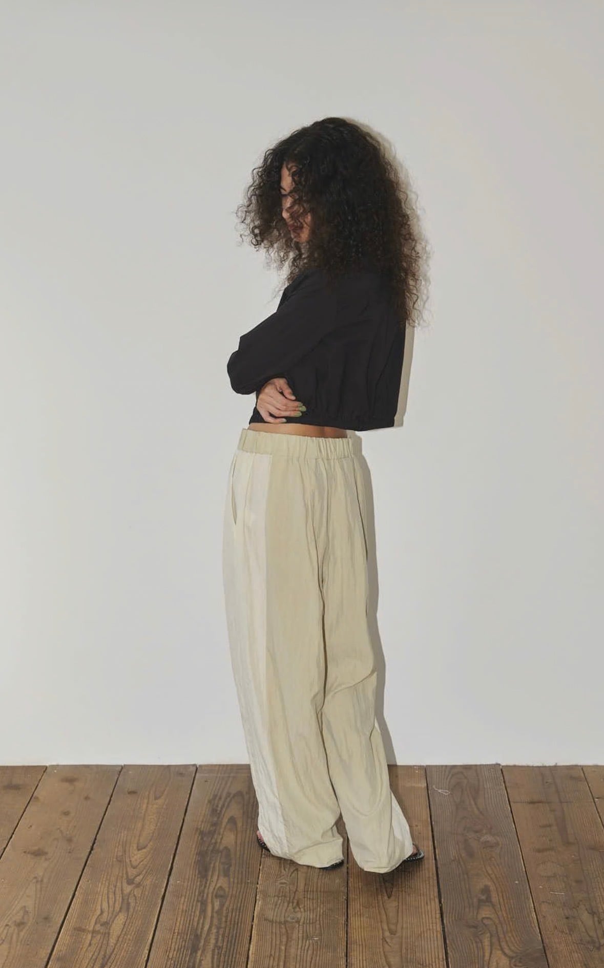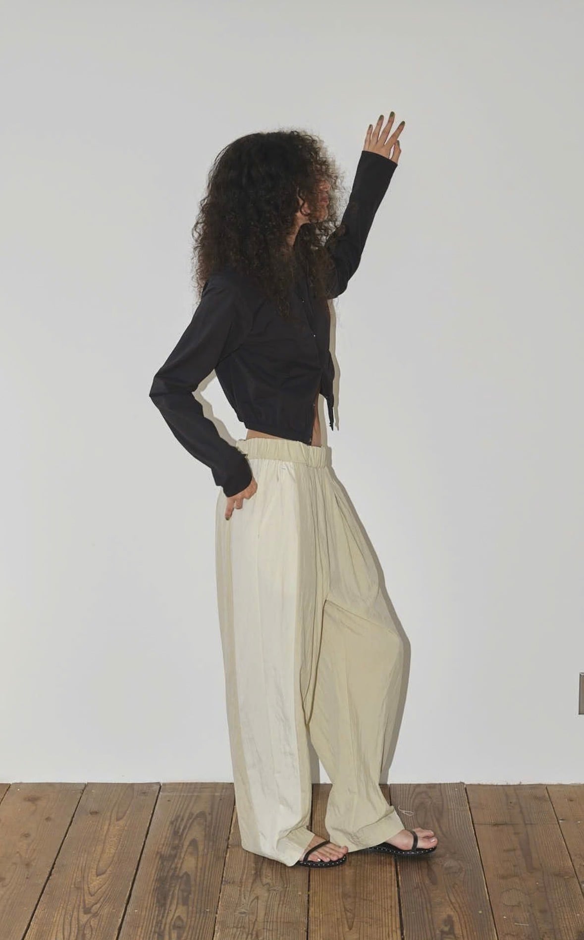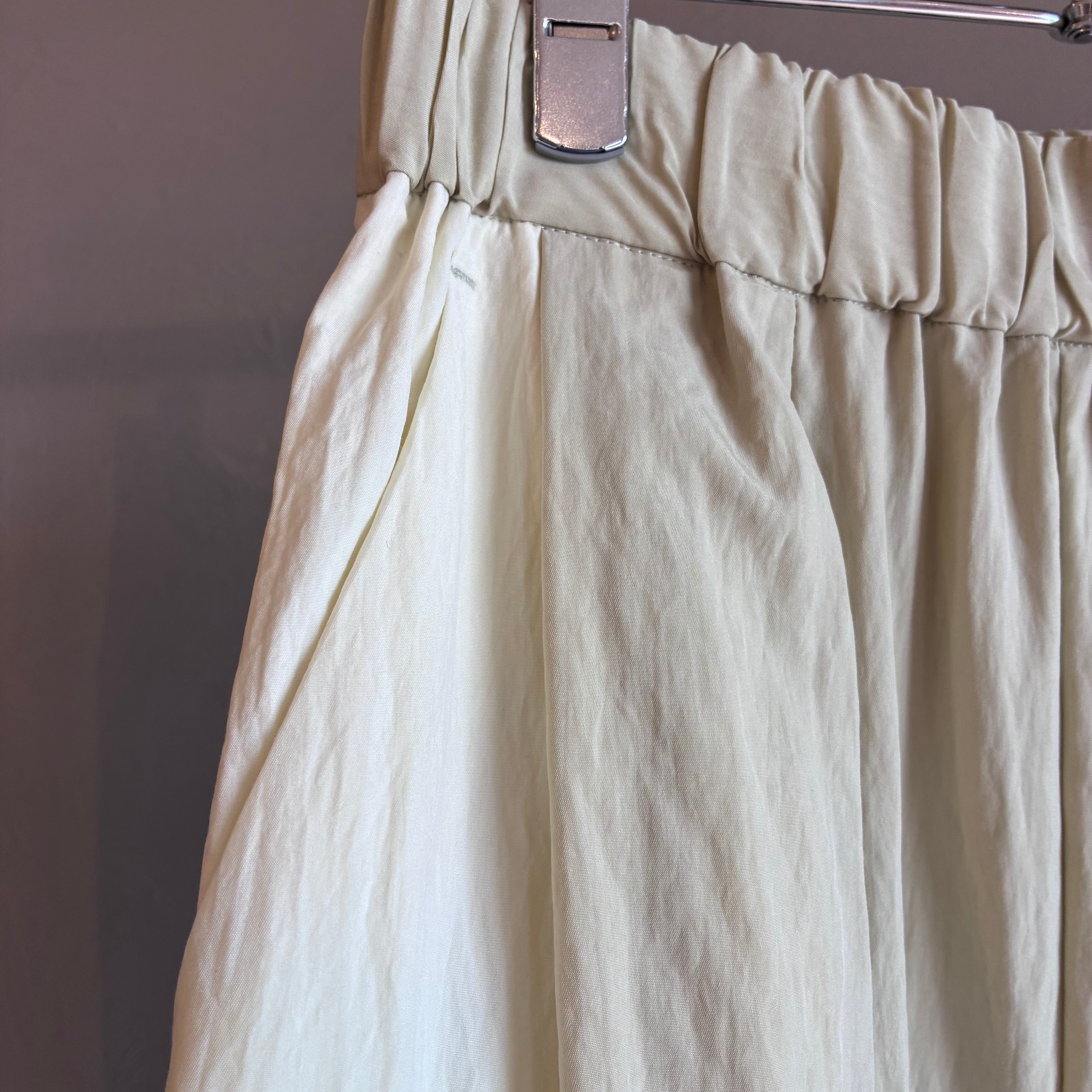 ウエストは総ゴム仕様ながら、リラクシーな着心地とすっきりとしたシルエットを両立しました。