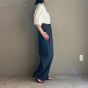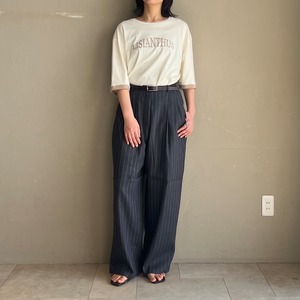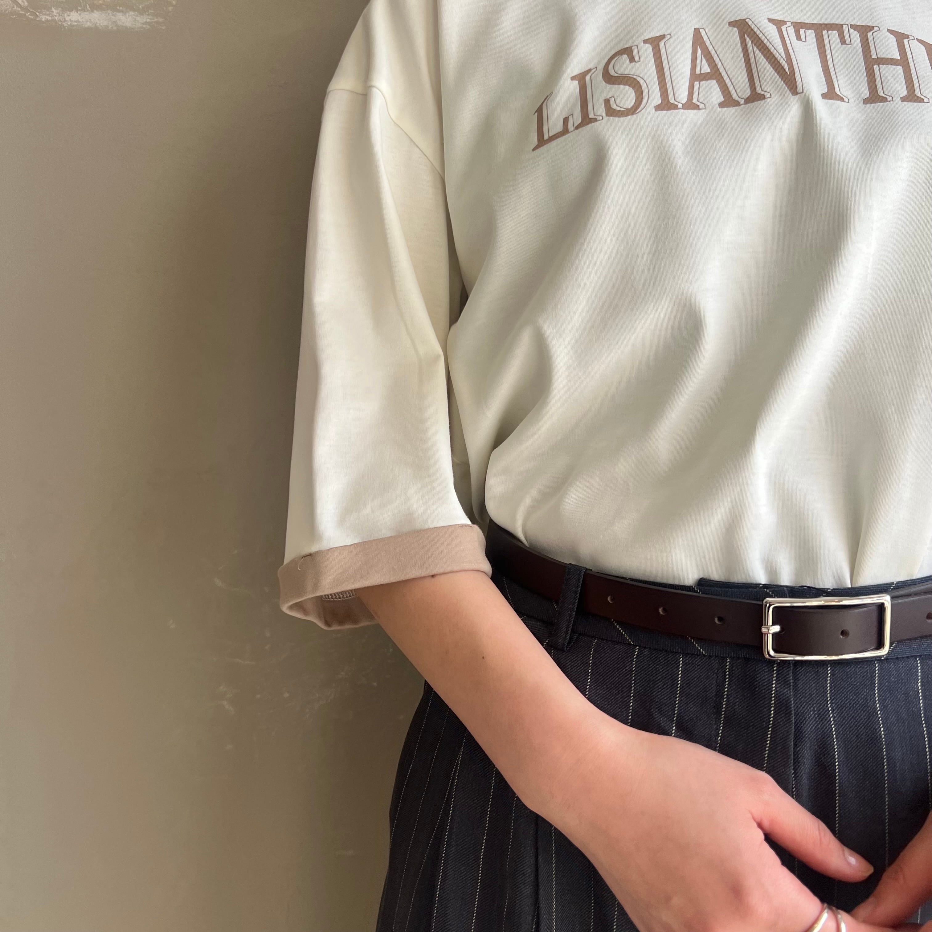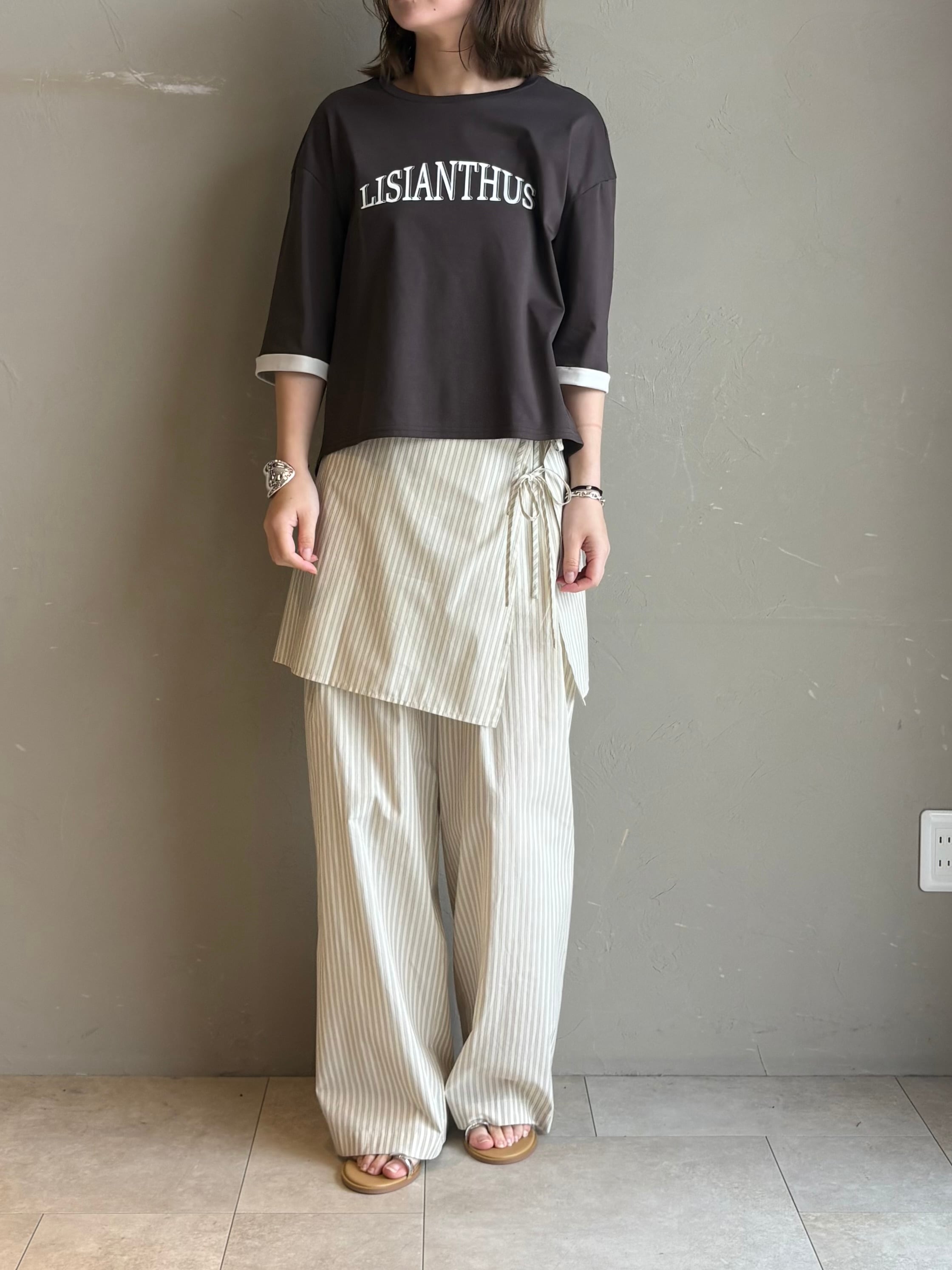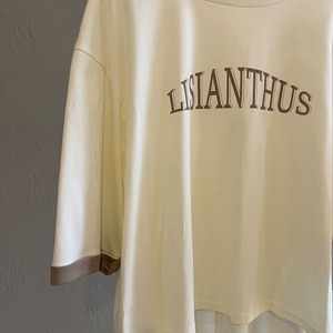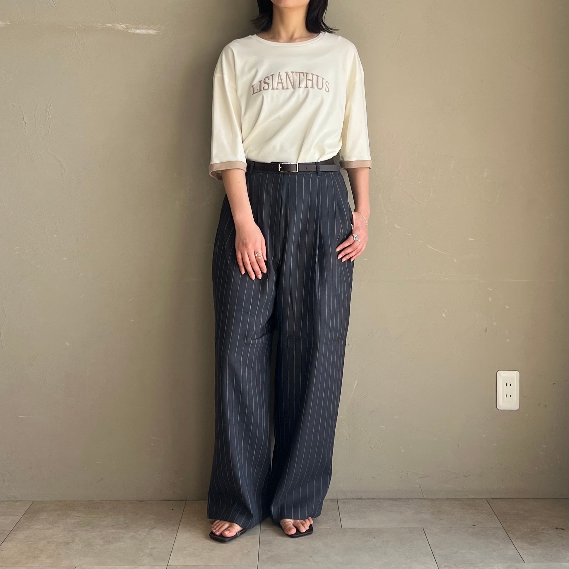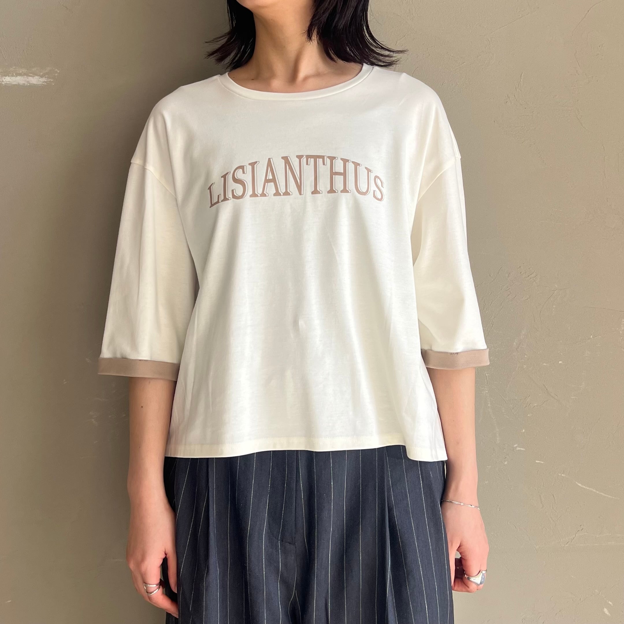 背中のピンタックが後ろ姿もこなれて見えるポイントになっており、落ち着いた配色のキレイ目ロゴTです。