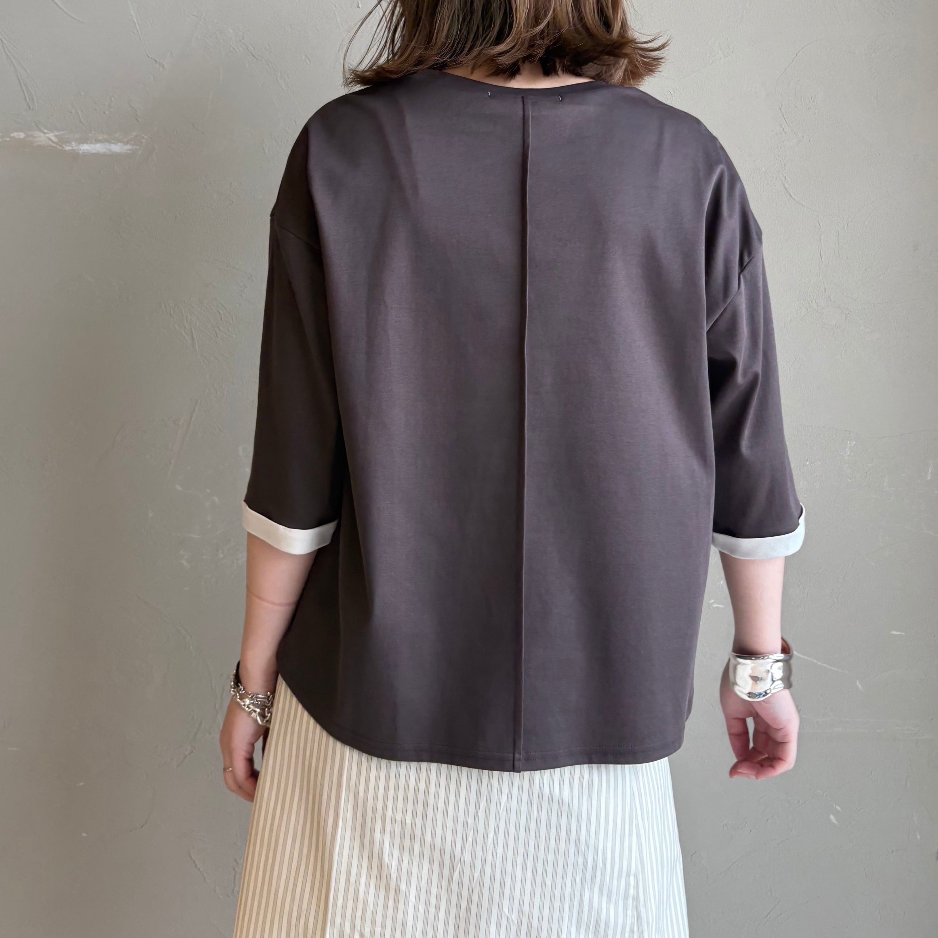 短すぎない着丈で、インせず着れるのでデイリーに気兼ねなく着れる一枚になっています。
