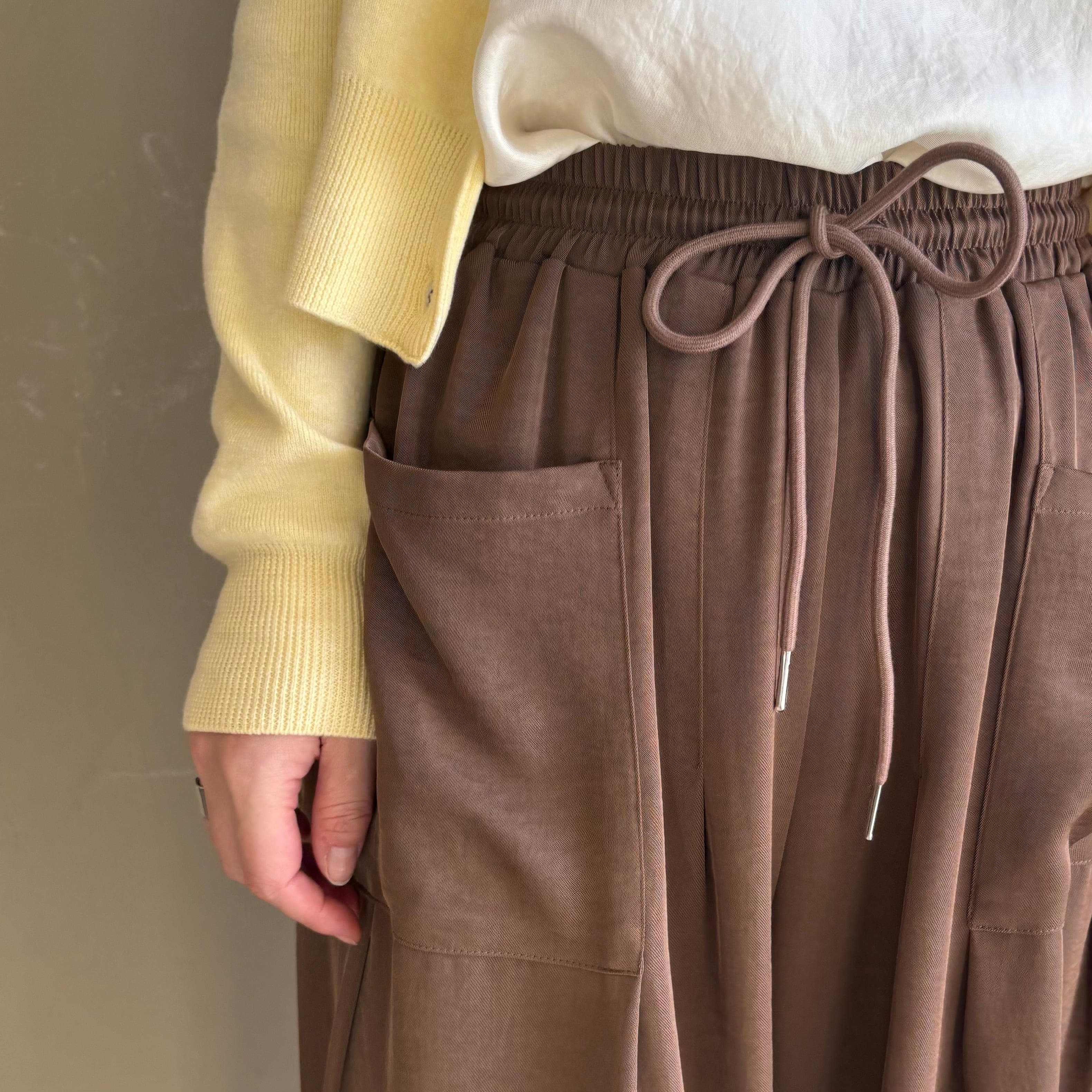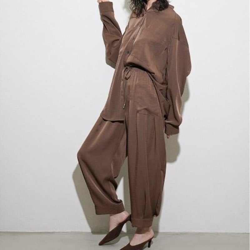 CYAN TOKYOの「ヘムタックグロッシーイージーパンツ」はラクなのにきれいを叶えてくれる大人の一本。