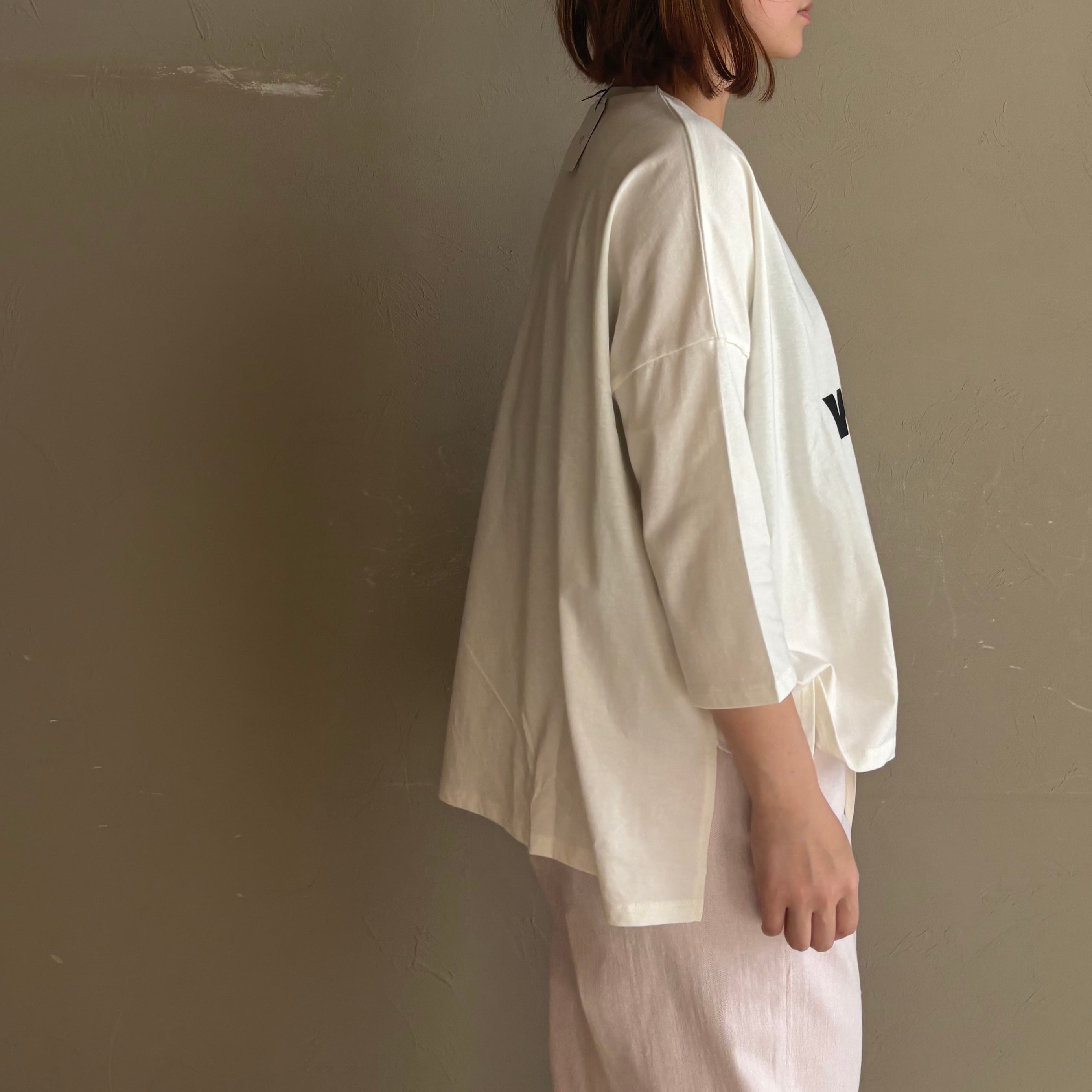 ワイドな身幅でゆったり着用できるロゴTシャツ。袖丈は季節の変わり目にピッタリな七分丈で、腕まわりをすっきりみせてくれます。