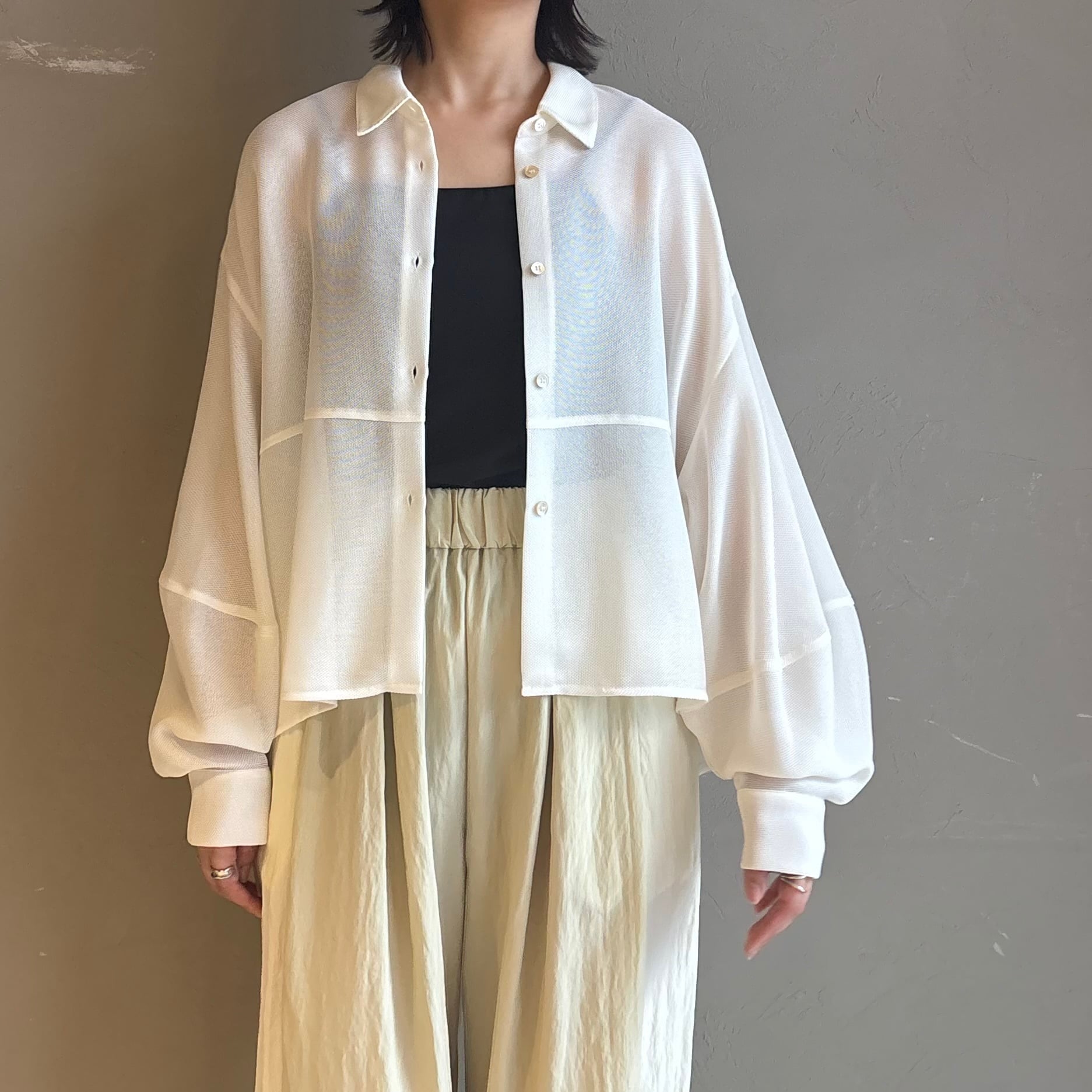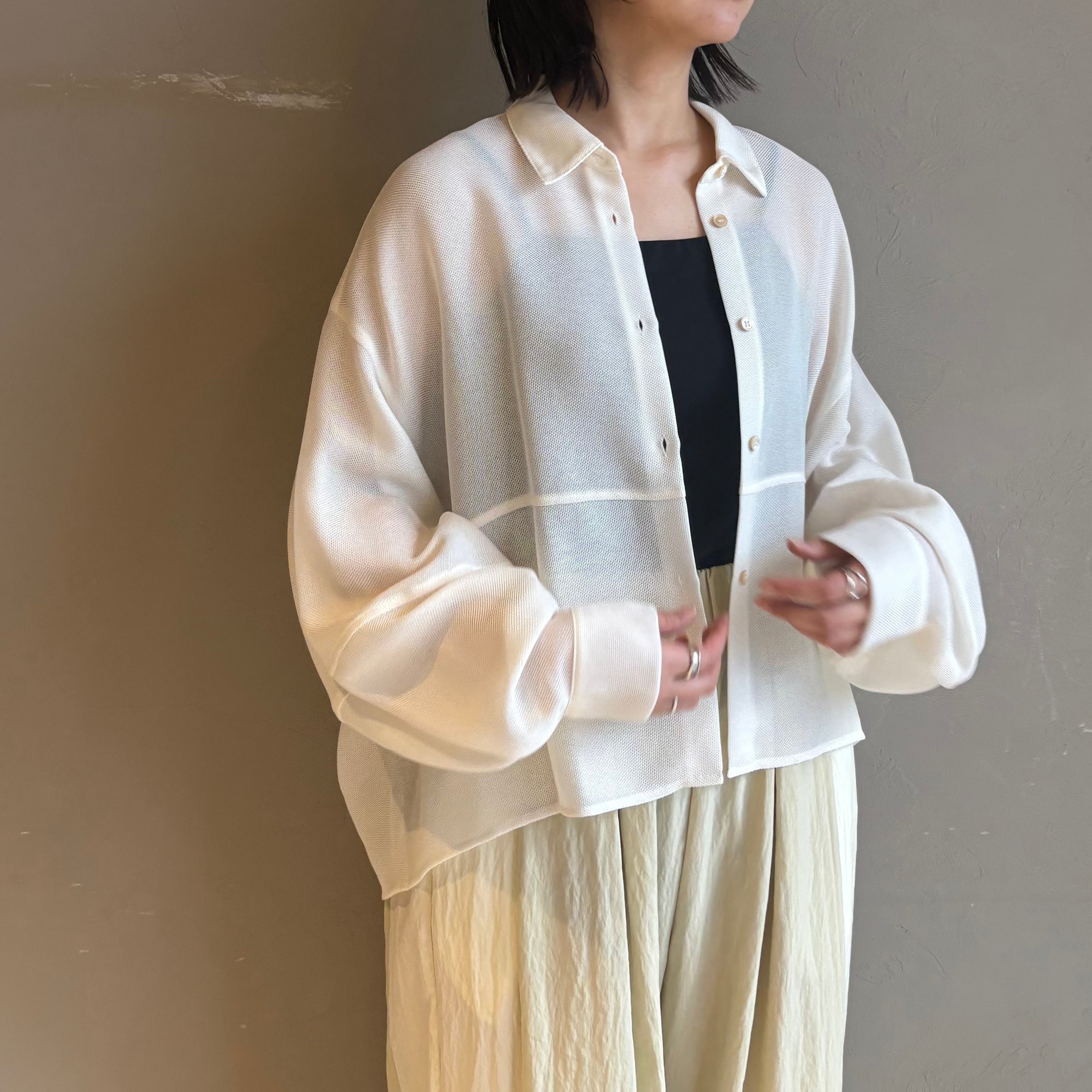 【 CLOCHE 】 ボリュームスリーブメッシュシャツ