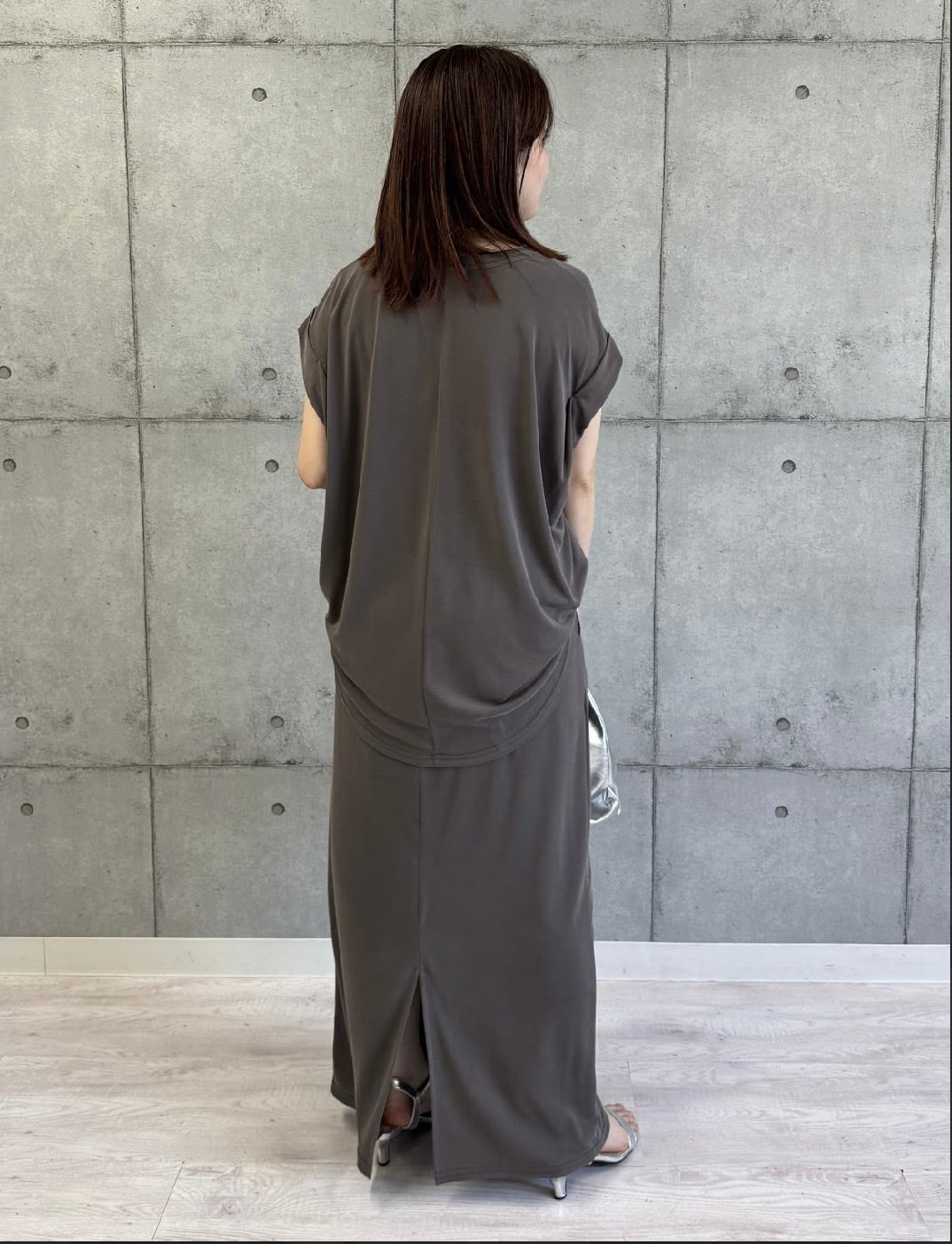 ゆったりとしたサイズ感に、前後差のある丈でヒップラインを自然にカバー。