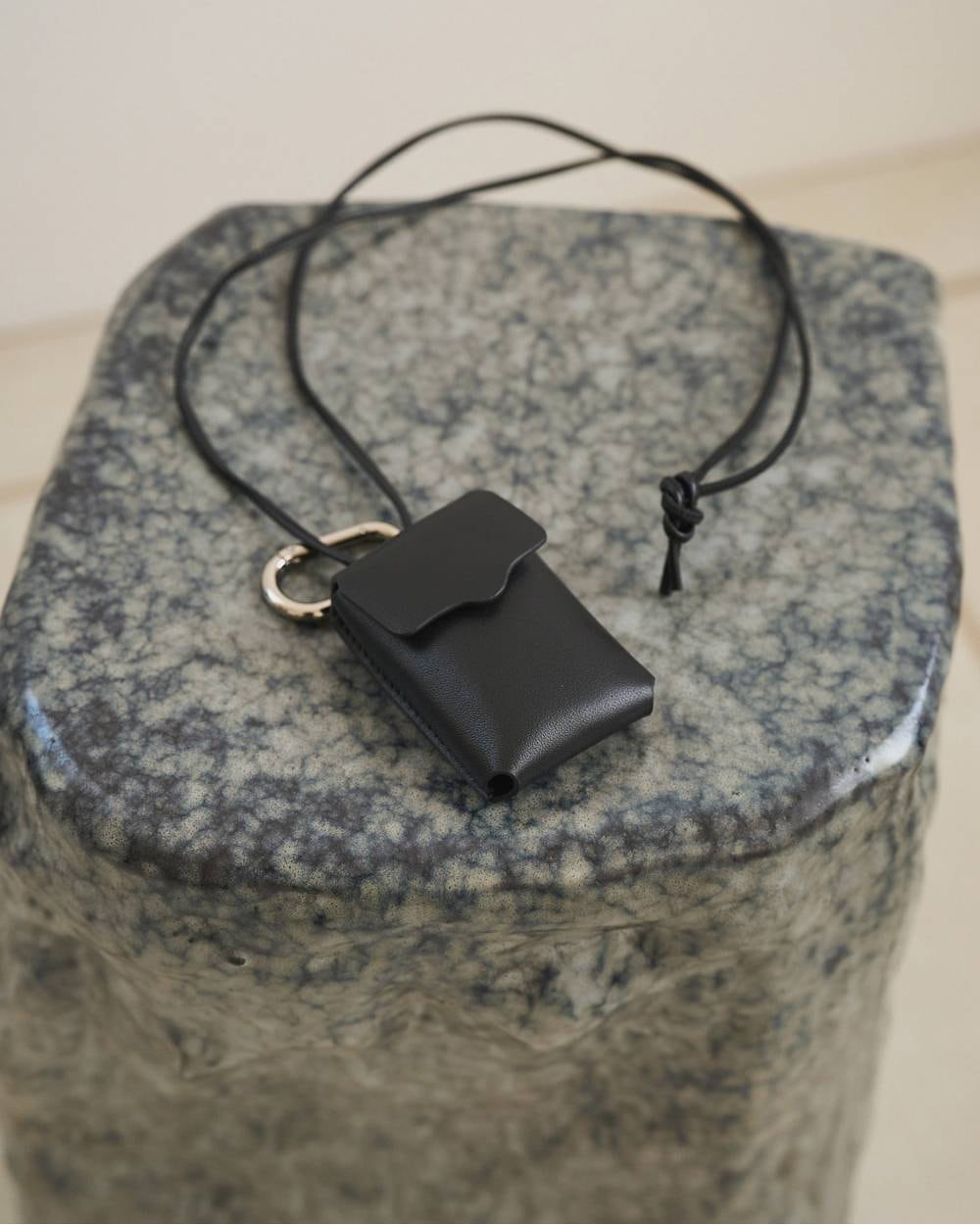 コンパクトなサイズ感でネックレス感覚でつけていただけるレザーケース。