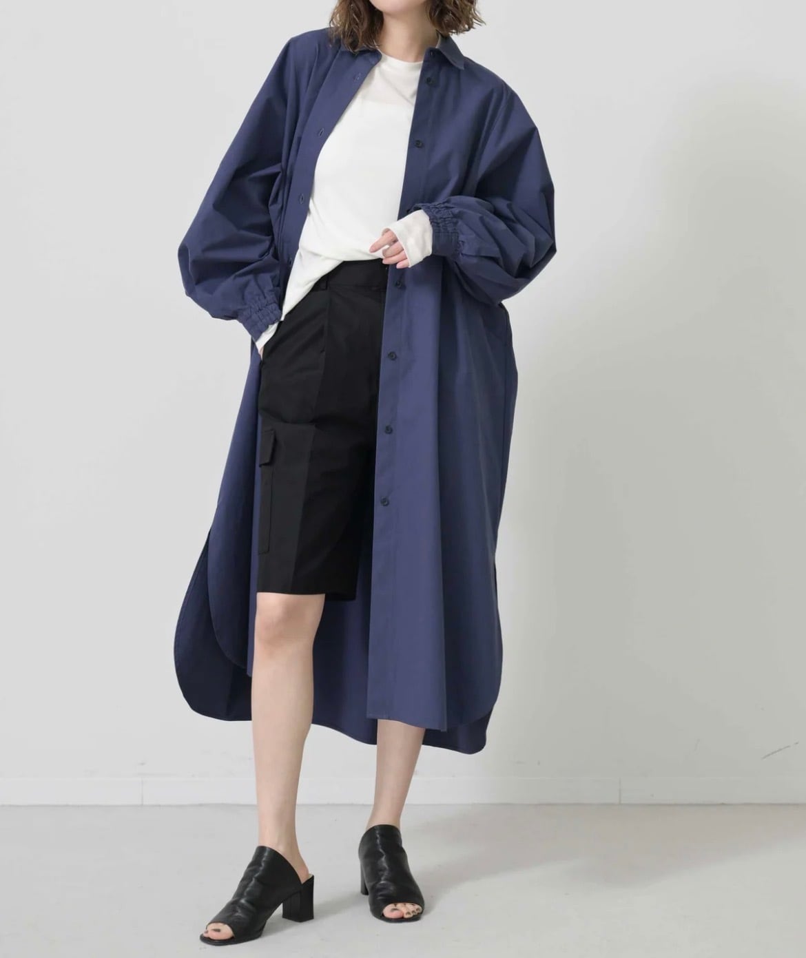 ・体型を選ばず縦長に見せるストレートシルエット。