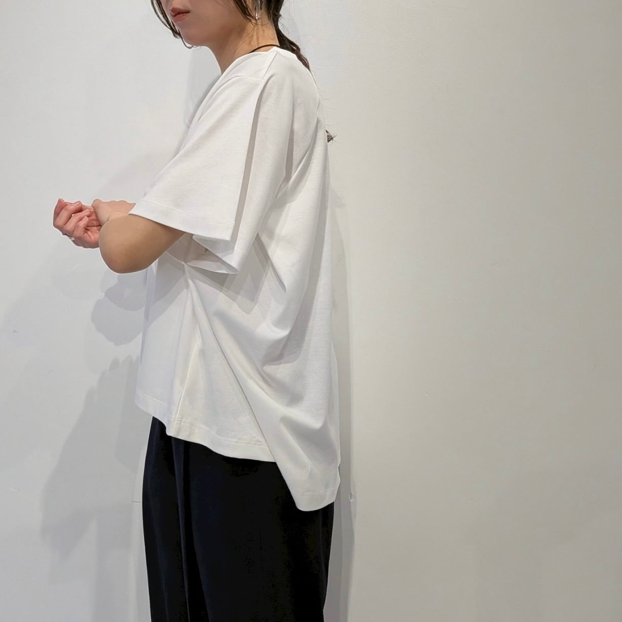 ボトムとのバランスを取りやすい絶妙な丈感にこだわり、袖口にかけてやや広がるシルエットで抜け感を演出。