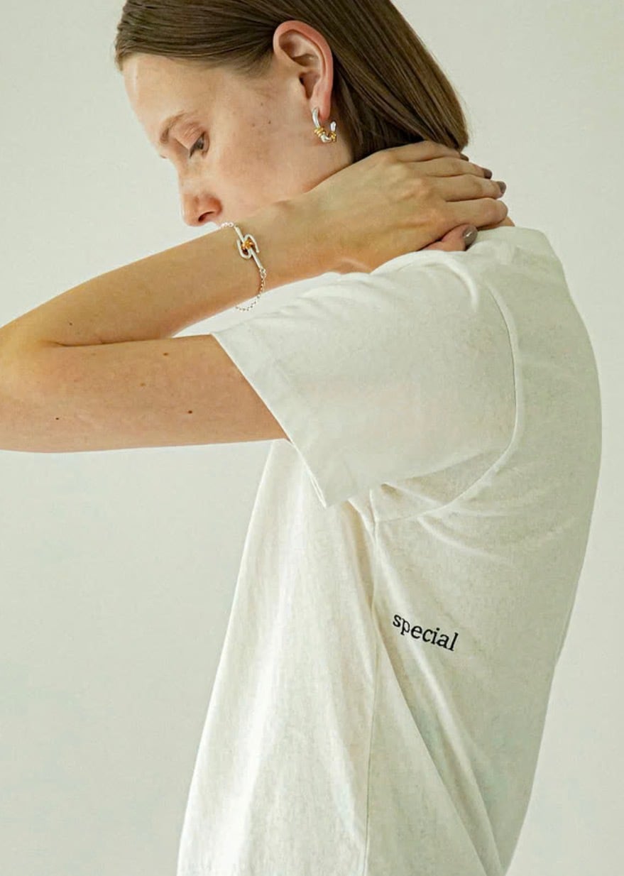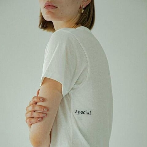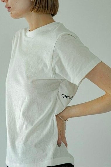 コンパクトなサイズ感、背中の隅にある”Special”の刺繍がポイントになったシンプルなTシャツは、一枚でも、レイヤードにもおすすめです。