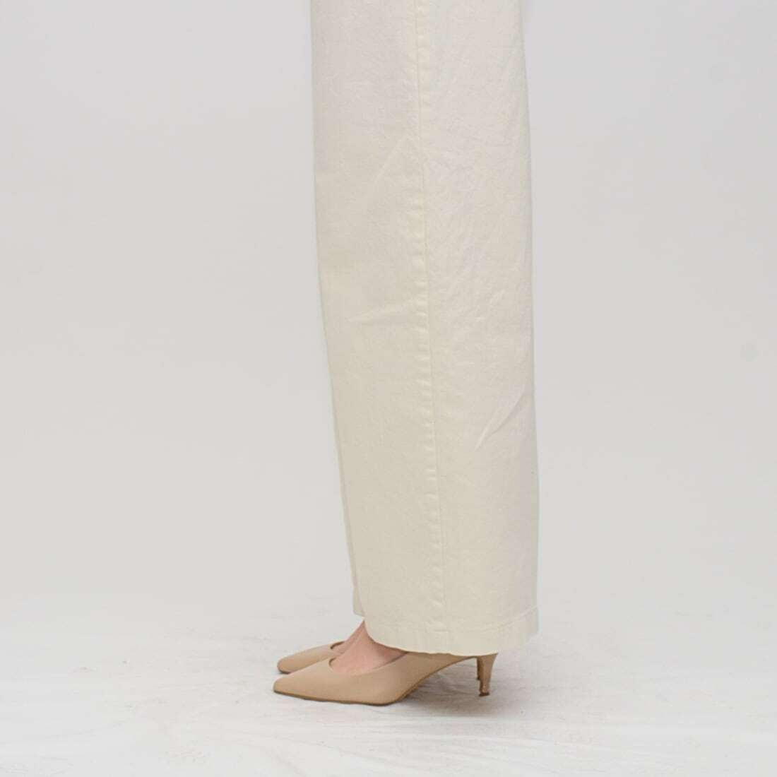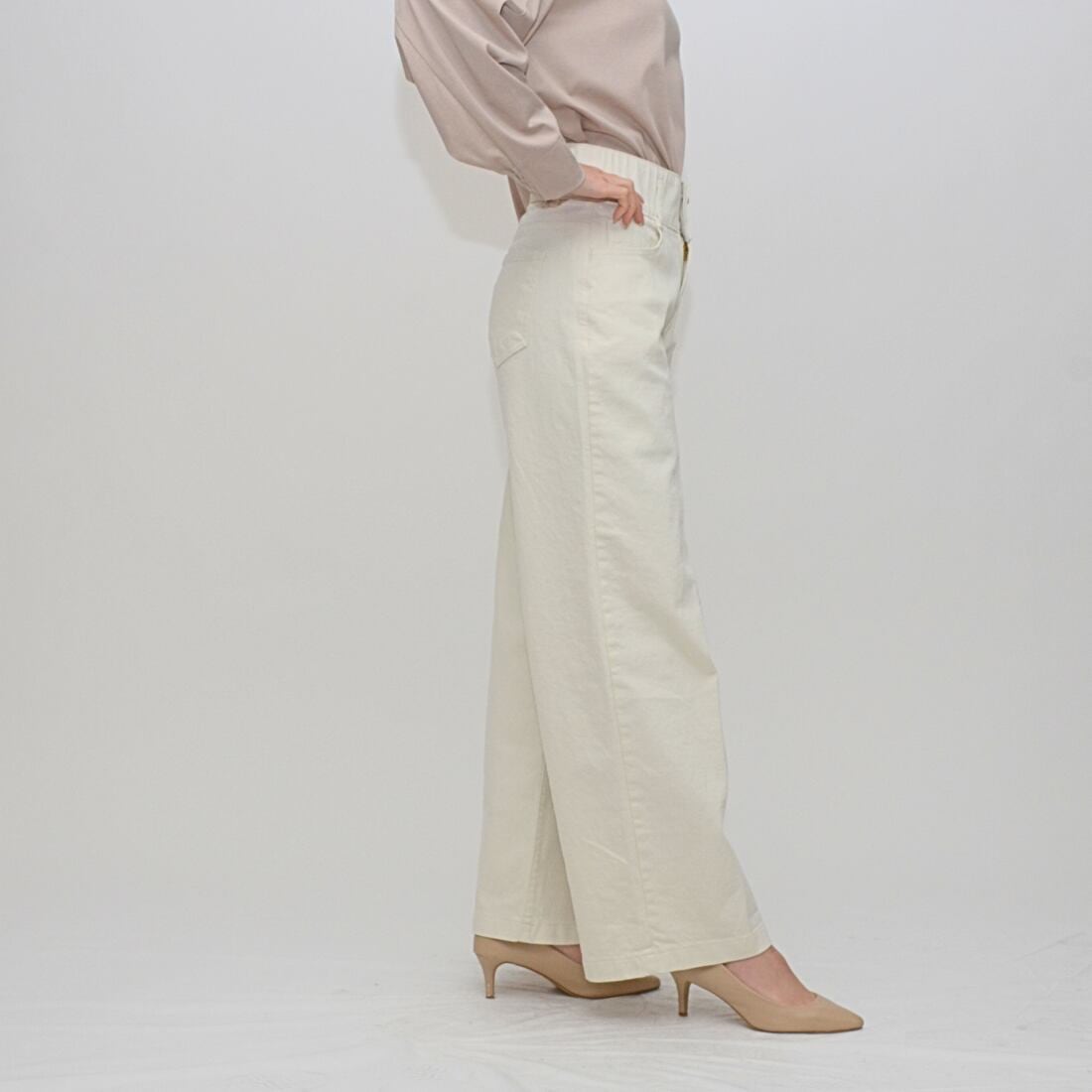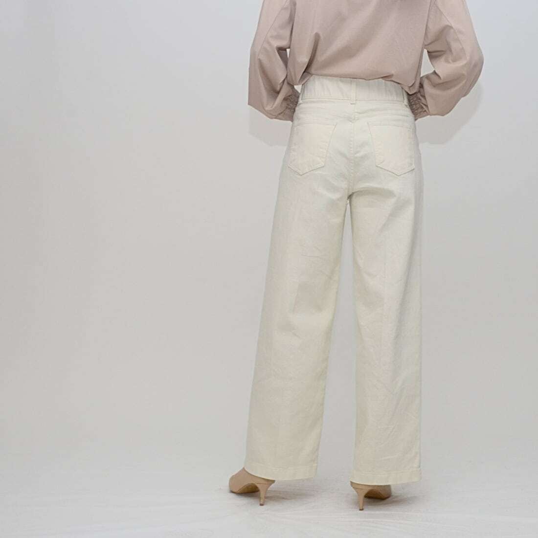 ヒップラインを高く見せる計算されたポケット位置と、脚のラインを拾いすぎない絶妙なフォルムにより、誰でも簡単に「美脚」を実現できる洗練された一着に仕上げました。