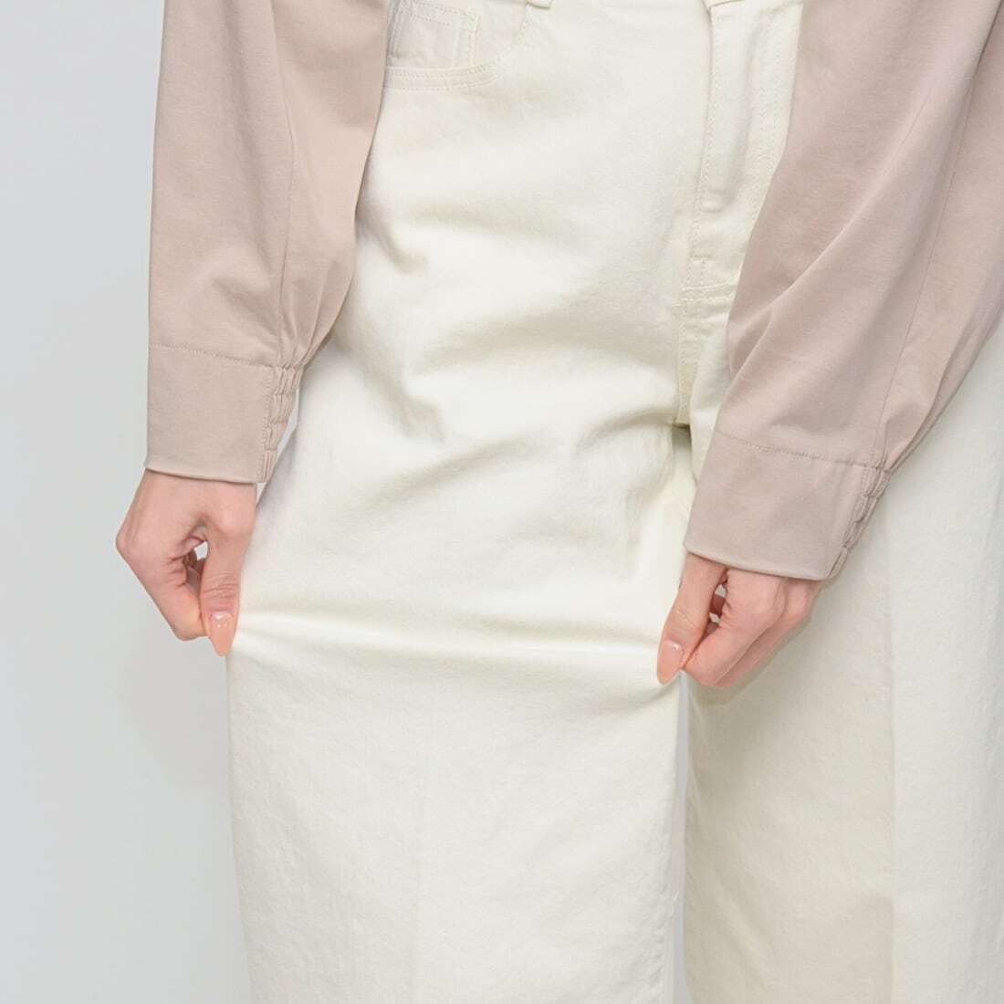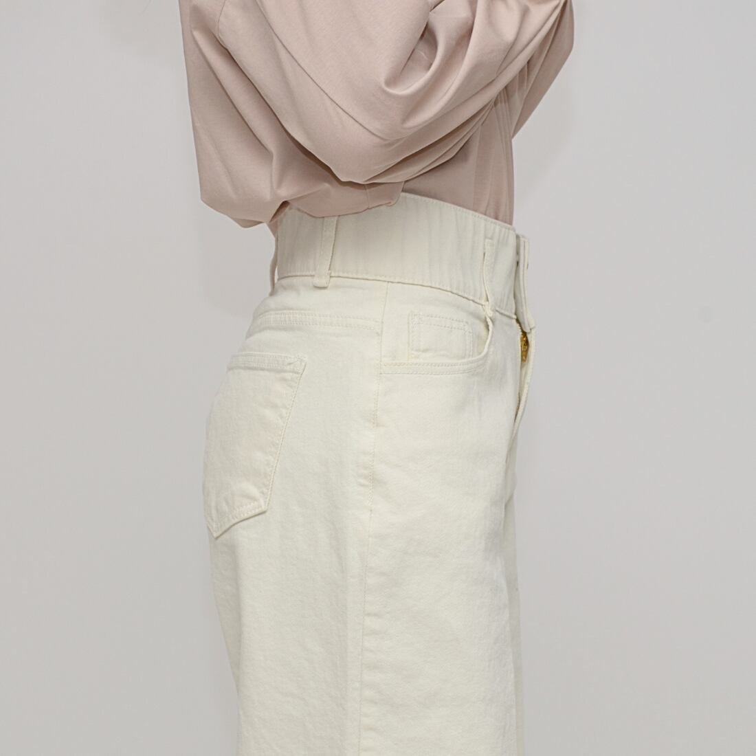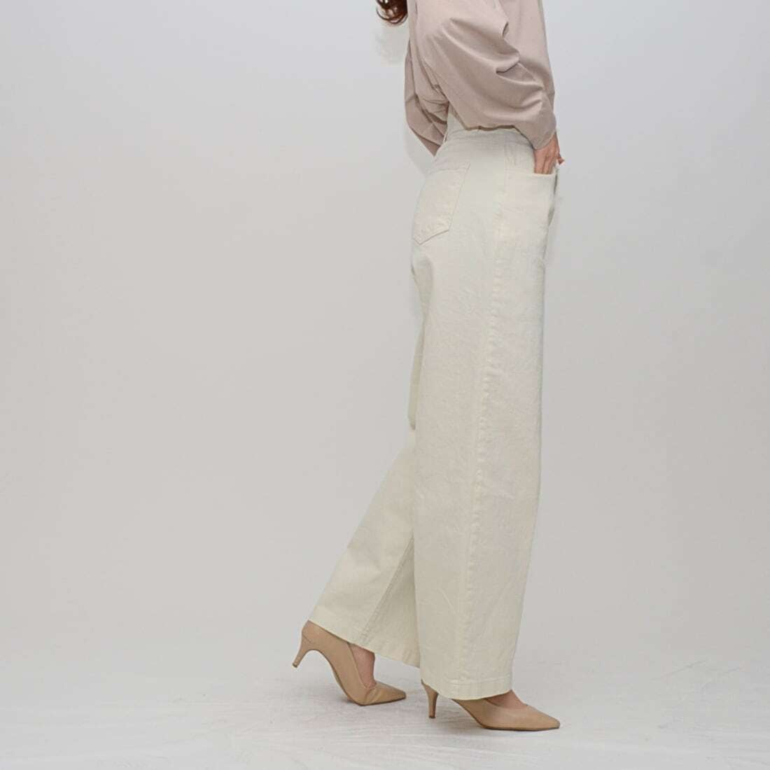 ヒップラインを高く見せる計算されたポケット位置と、脚のラインを拾いすぎない絶妙なフォルムにより、誰でも簡単に「美脚」を実現できる洗練された一着に仕上げました。