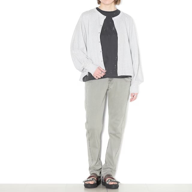ビンテージ染めによる自然な陰影が、カジュアルながらも奥行きのある表情を演出します。