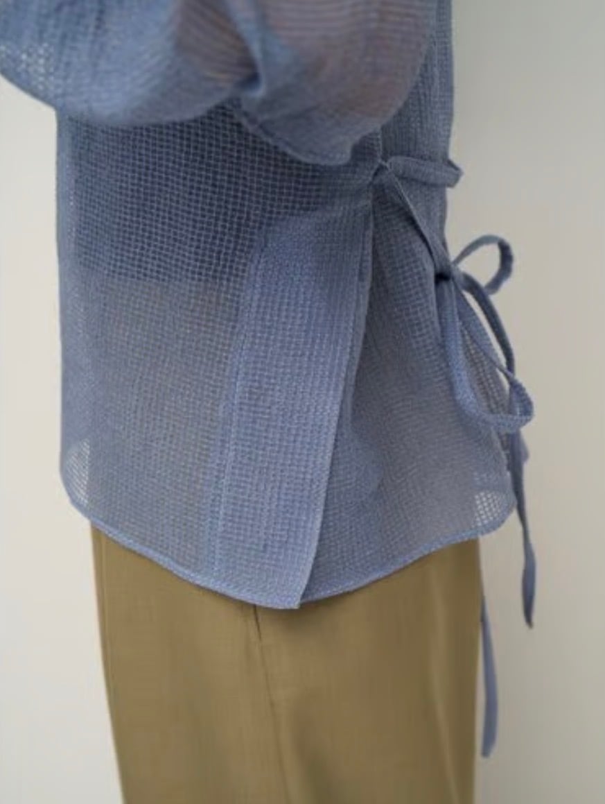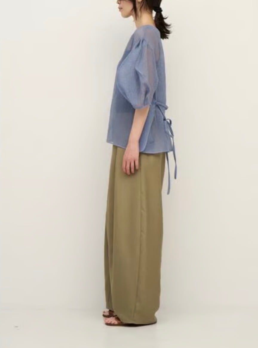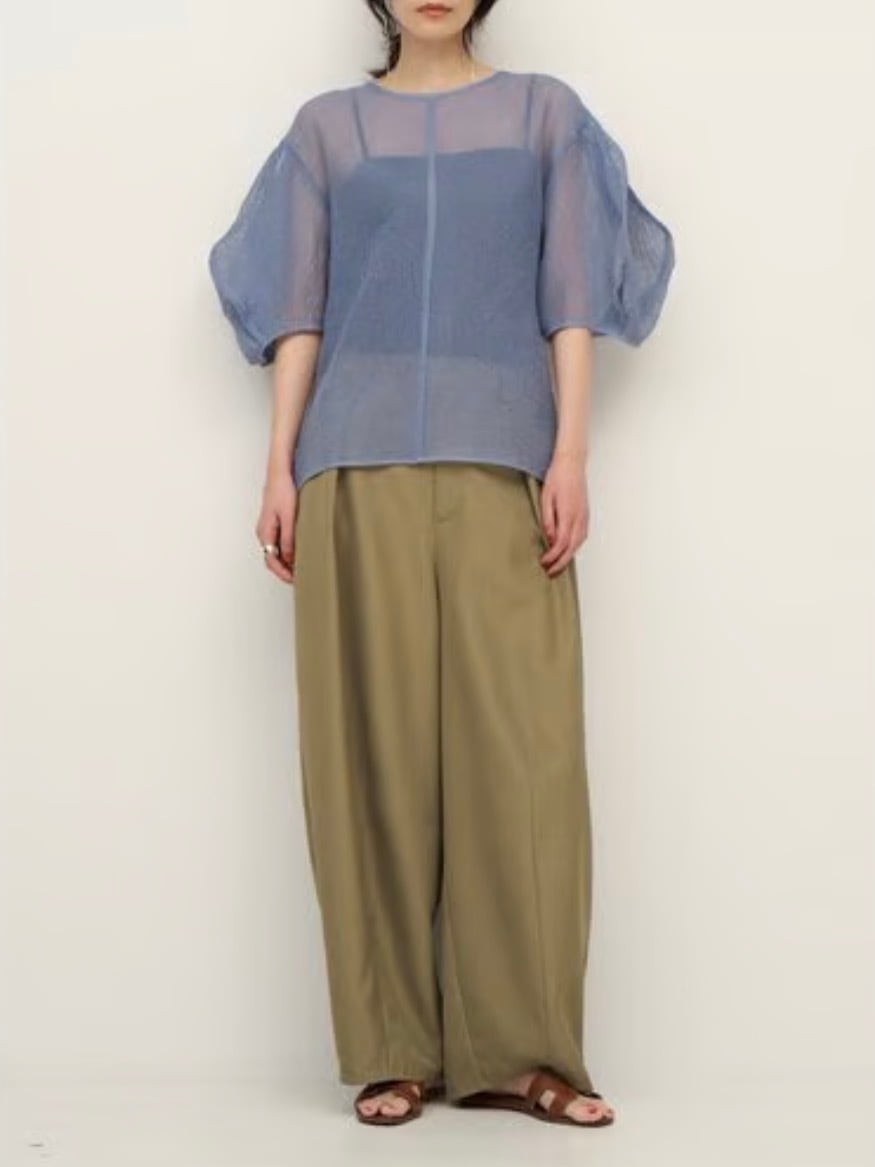 立体感のあるチェックが入った軽やかなシアー素材とふんわりとしたスリーブが、女性らしい柔らかな印象を演出します。