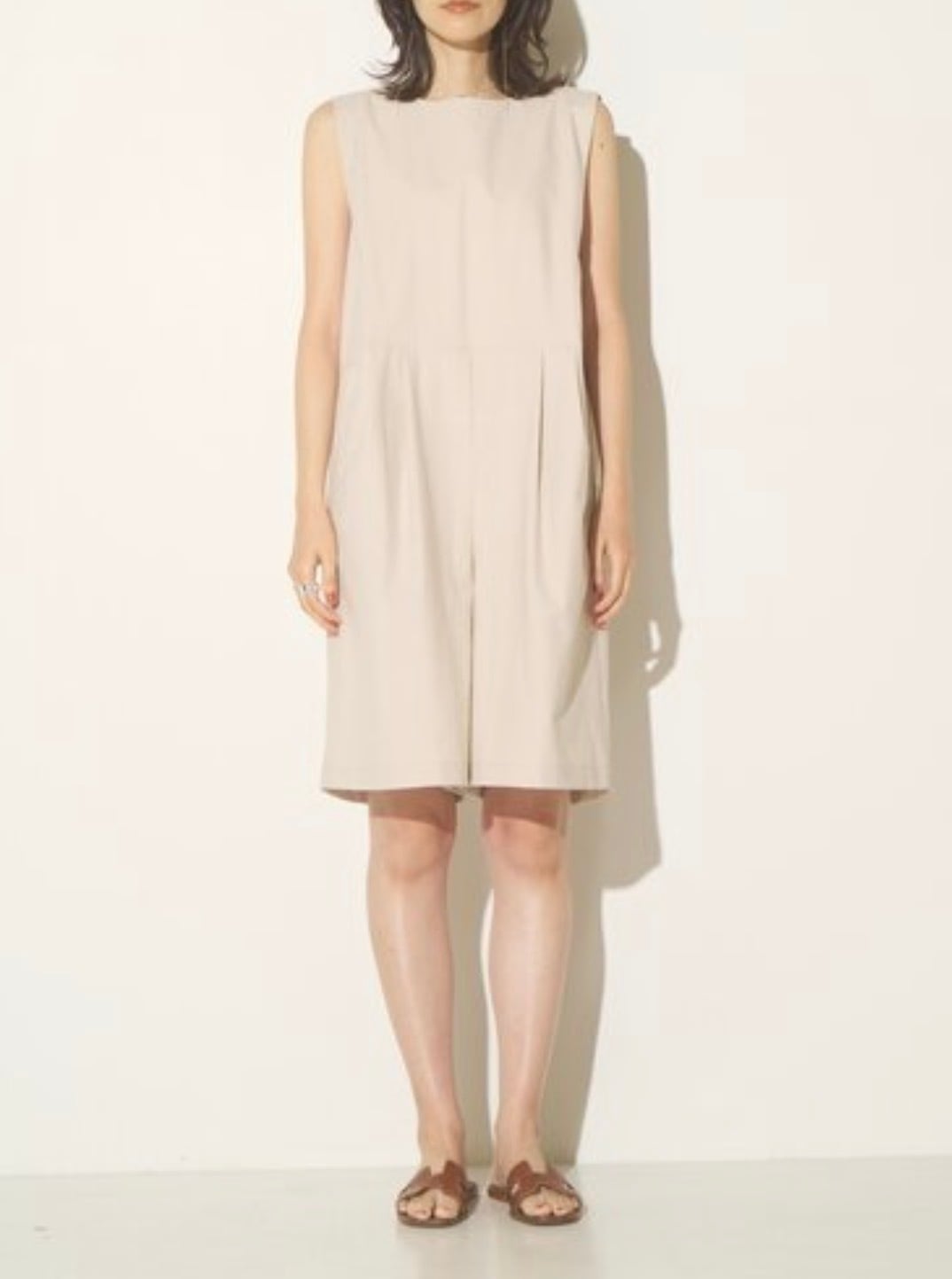パンツ部分にはタックを入れて、お腹周りをカバーしてくれるふんわりシルエットに仕上げています。