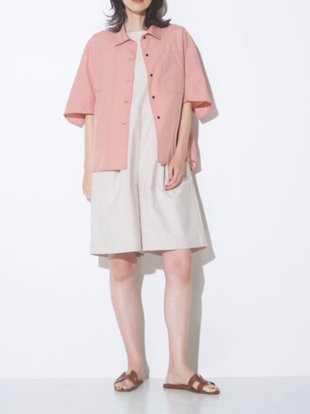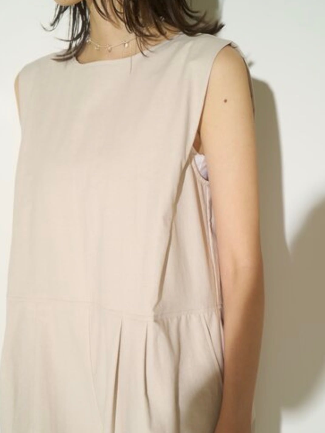 全体に程よくゆとりのあるシルエットで、体のラインを拾いにくく、1枚で上品に決まります。