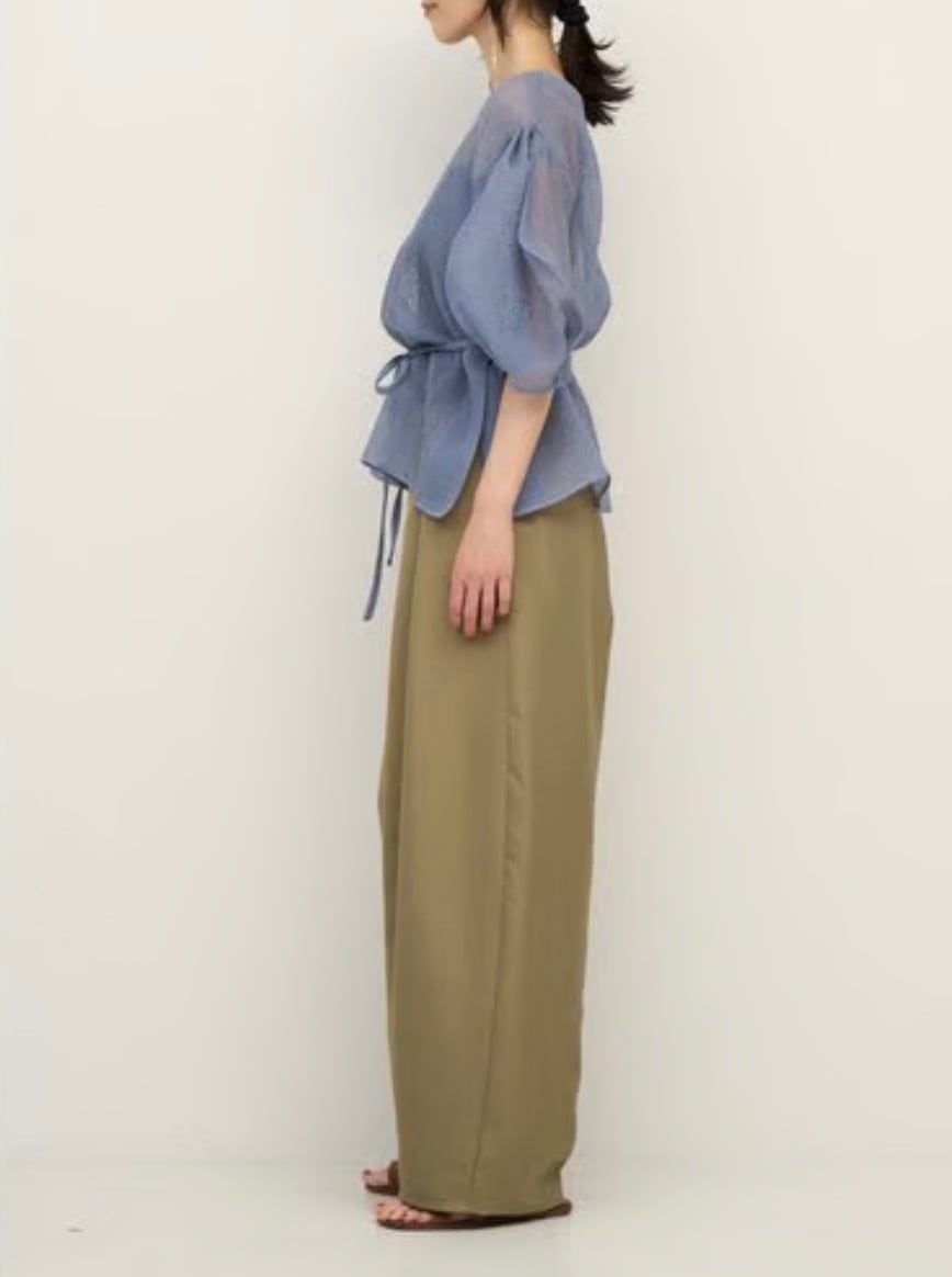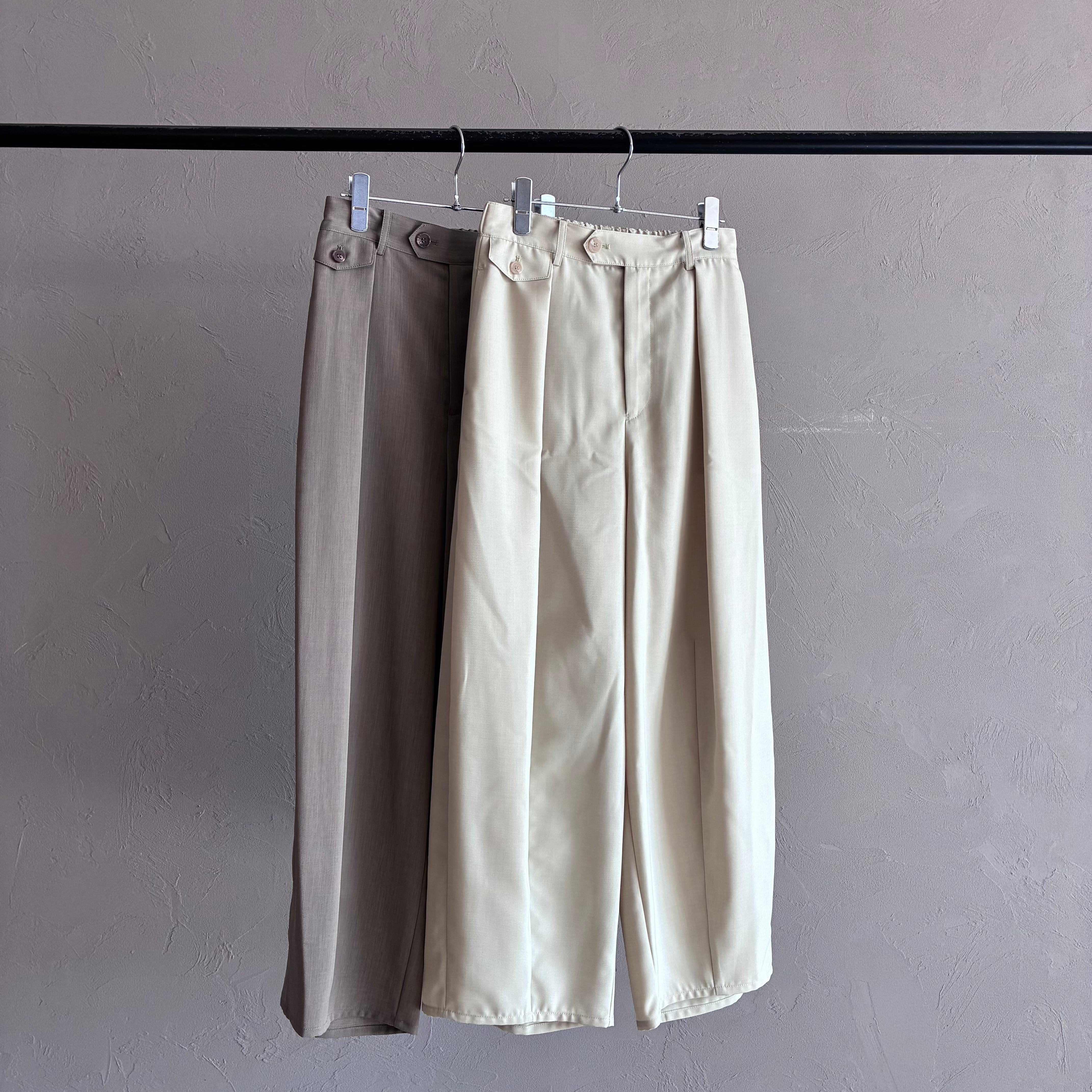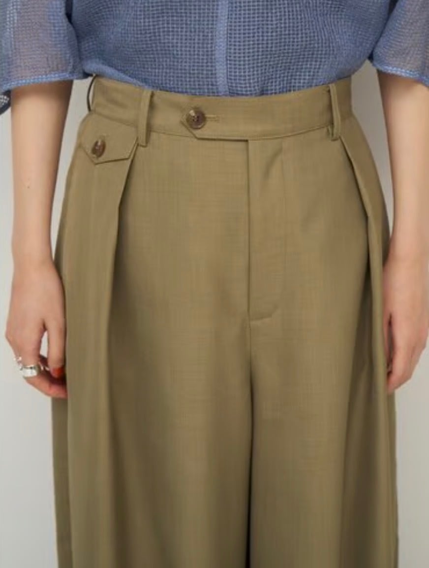 程よいハリのある素材なのでキレイなコクーンシルエットに。後より前側に分量感を多く設定し、ボリュームを感じながらもスッキリとしたラインで、コーディネートしやすいボトムになっています。メンズライクなスラックスをイメージしたウォッチポケットもアクセント。単品使いではもちろん、