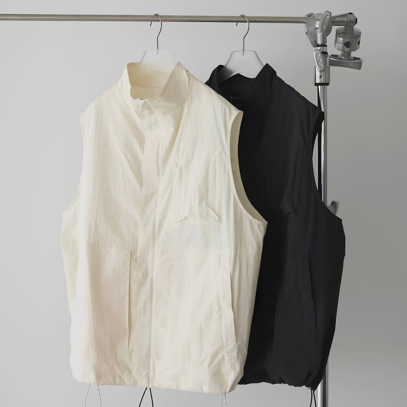 アーム周りを程よくカバーした、ノースリーブとしても取り入れやすいバランスで、裾のドローコードでシルエットを調節可能です。