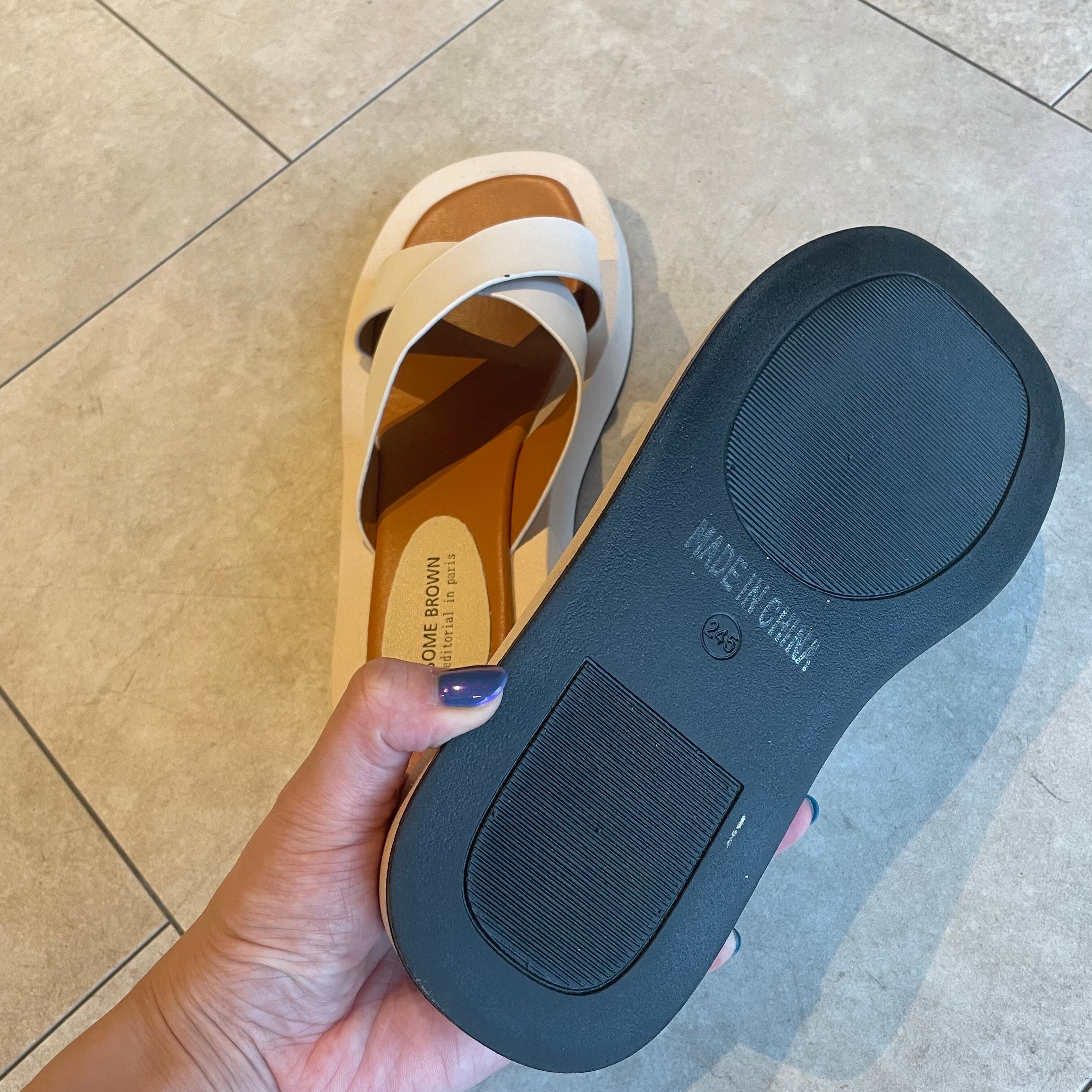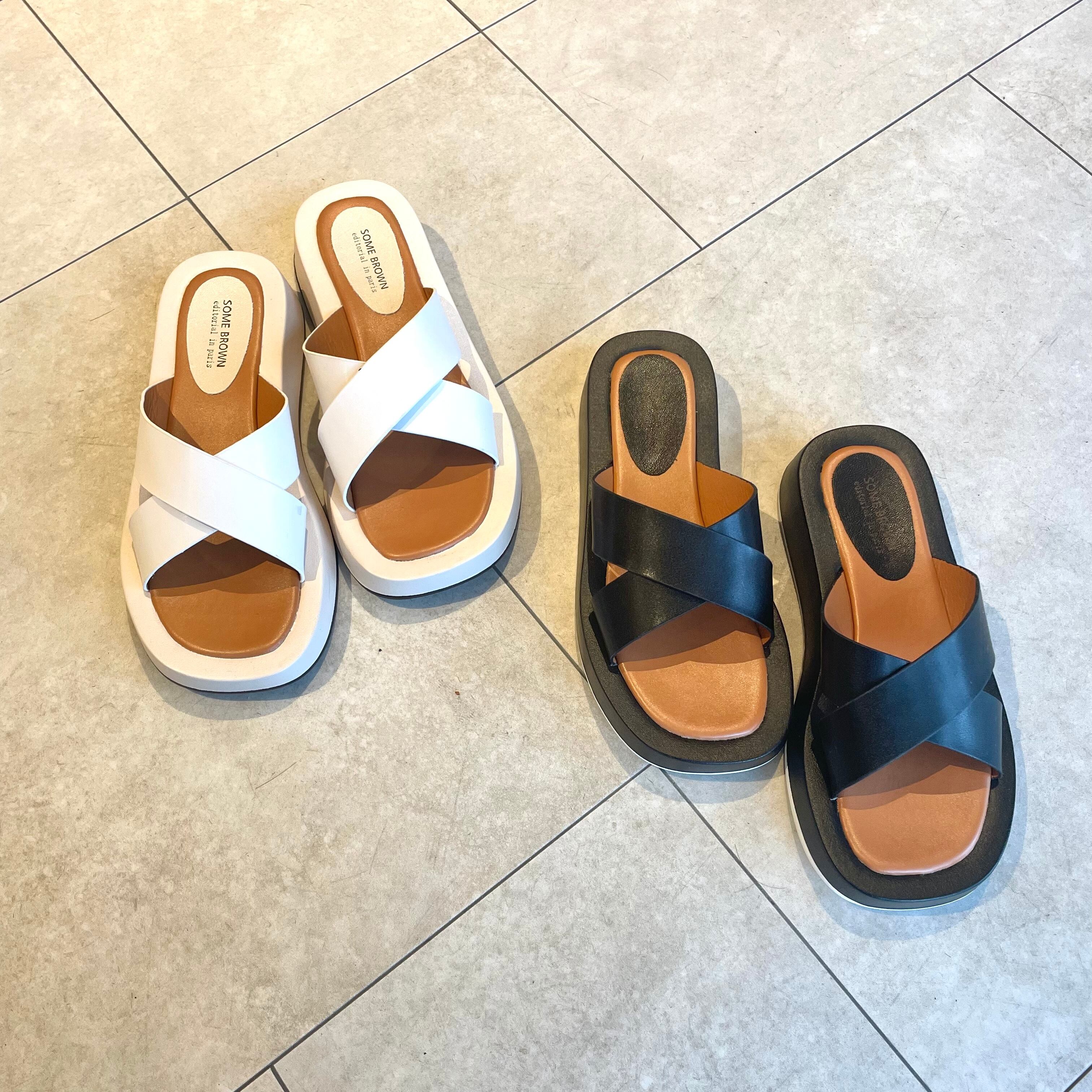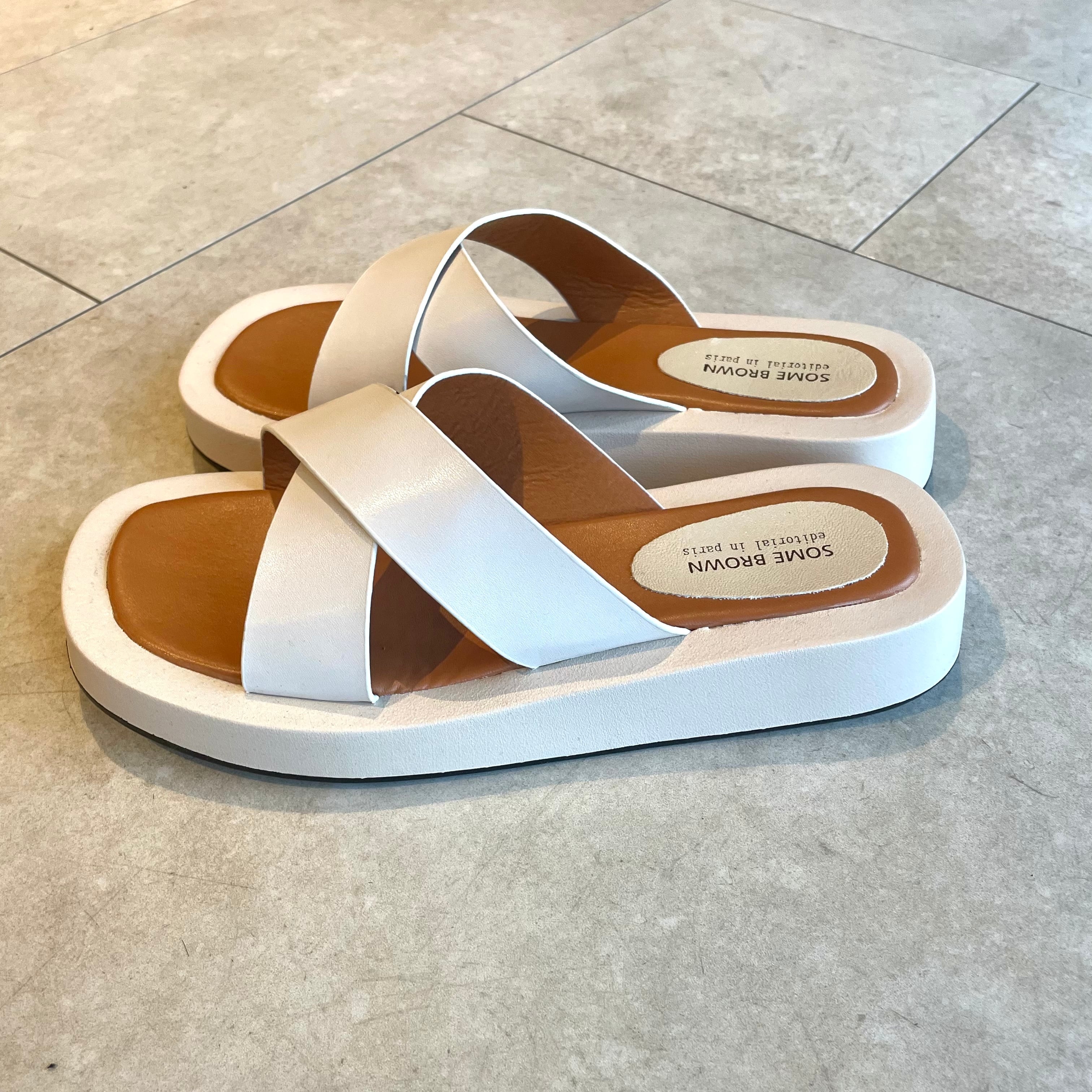 太目のベルトでクロスされたデザインが今季注目のクロスサンダル。