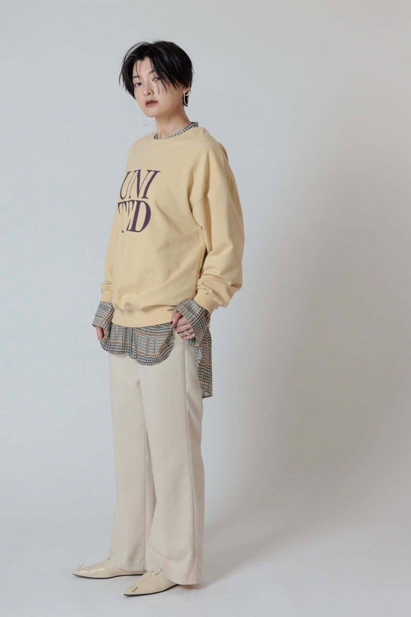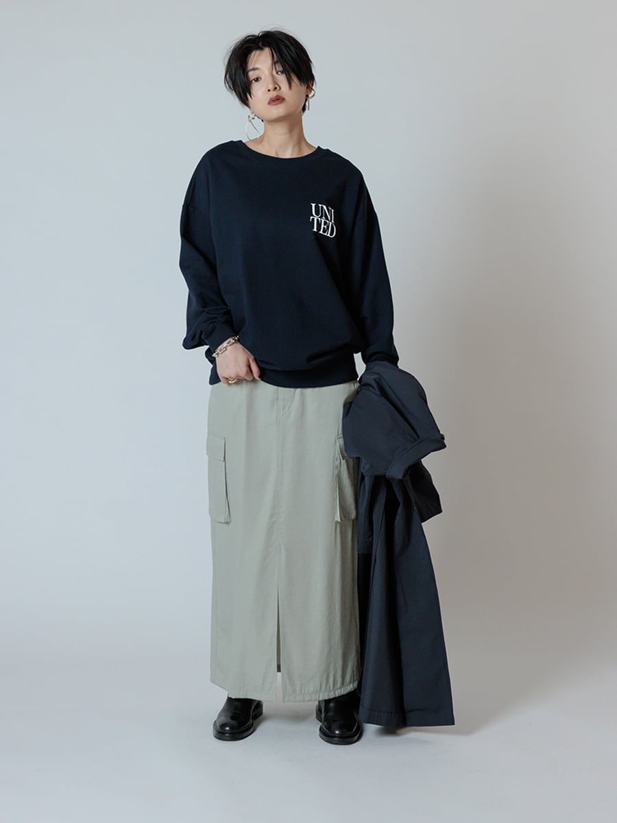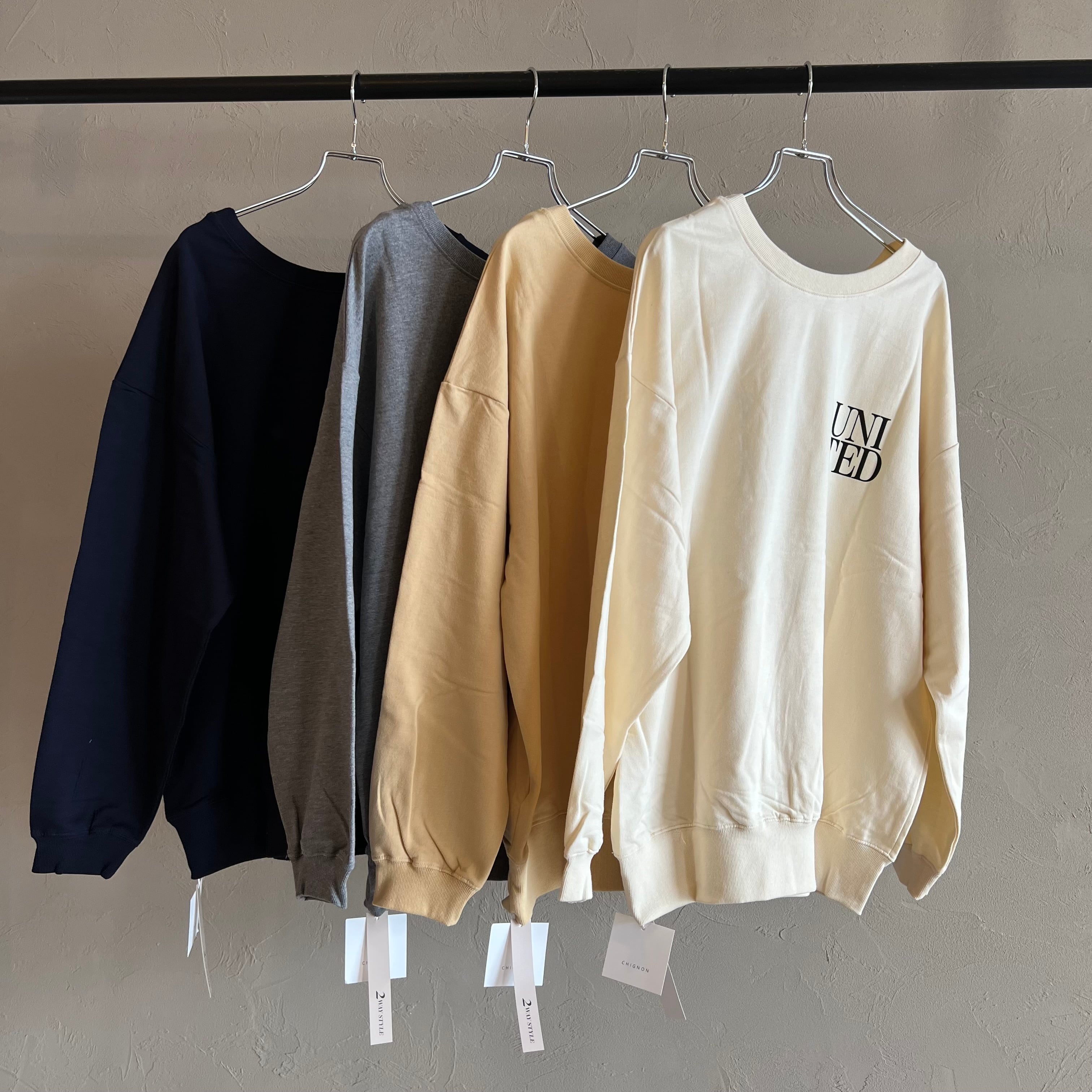 裏毛ならではのリラックスな着心地になっております。オーバーサイズに設計することで女性らしくご着用いただけます。