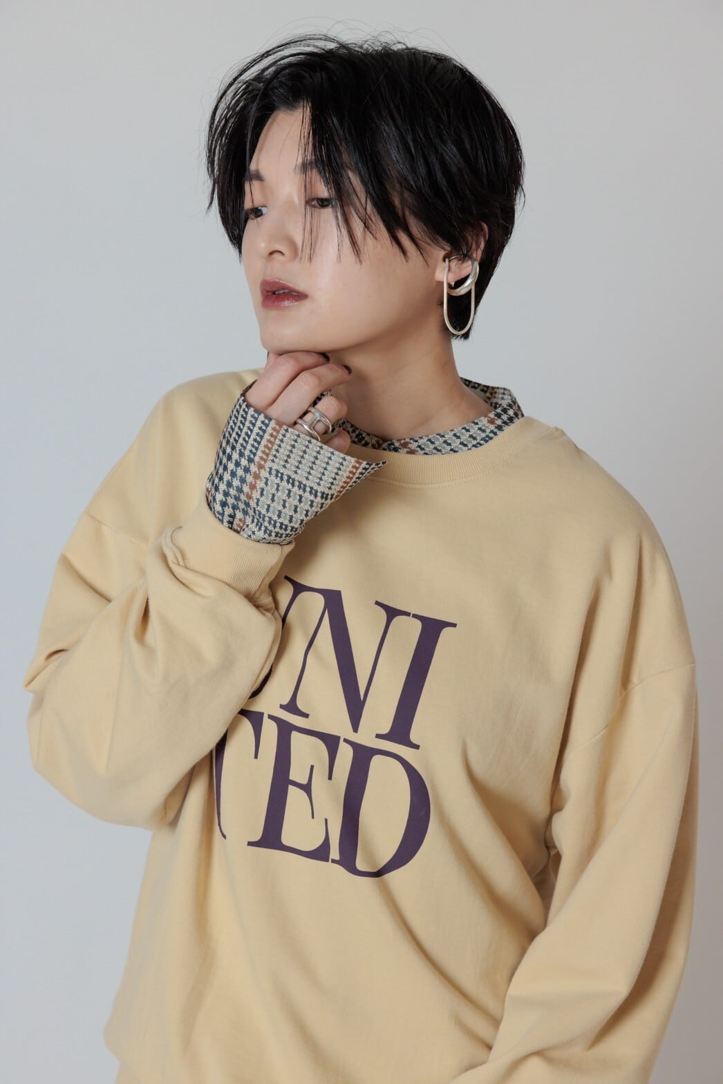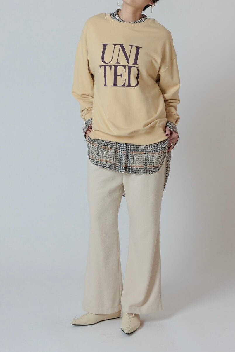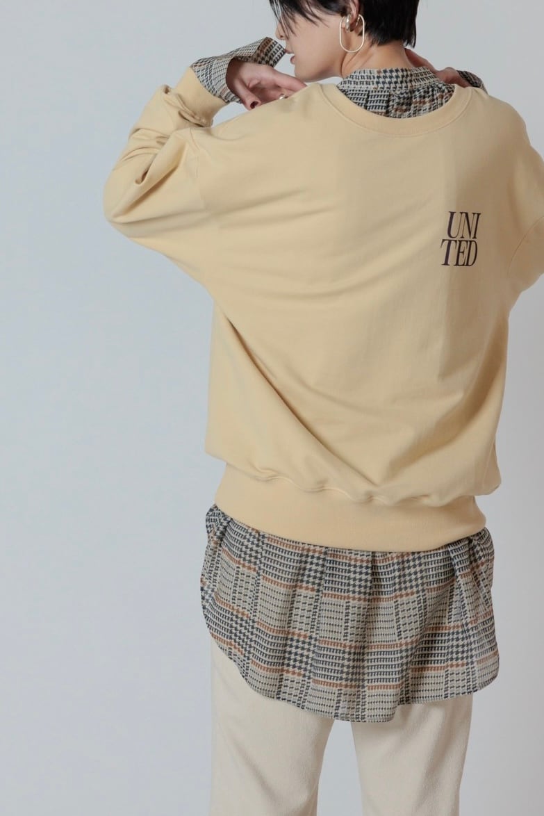 裏毛ならではのリラックスな着心地になっております。オーバーサイズに設計することで女性らしくご着用いただけます。
