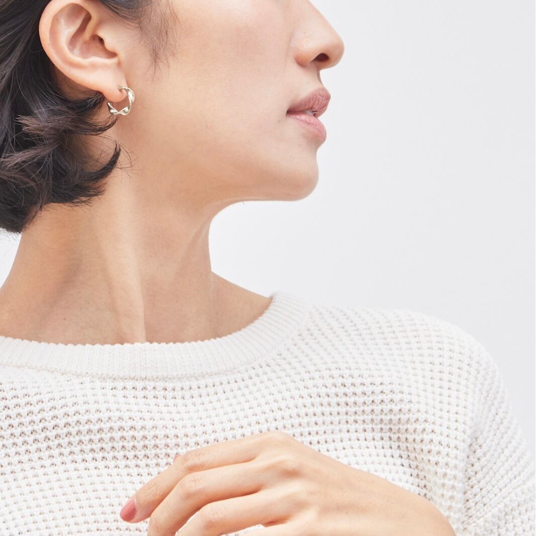 ツイストタイプの新モデル『Embrace Wavy』は揺らめく光をイメージしてデザインされたもの。顔の動きにあわせて上品な輝きを放ち、光と影のコントラストで印象的な耳もとを作り出します。