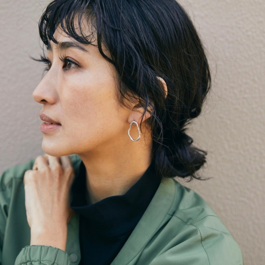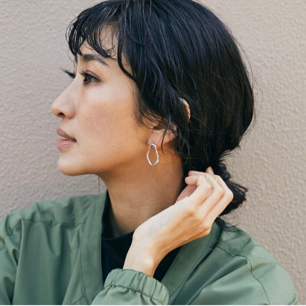 上品な曲線を描いた変形リングシェイプ。 軽やかな見た目のデザインで様々なスタイルにフィットします。サイズ感も程よく、快適な着用感を実現しました。表面はサンドブラッシュと言われる特殊な加工を施し、高級感のあるマットな質感に。
