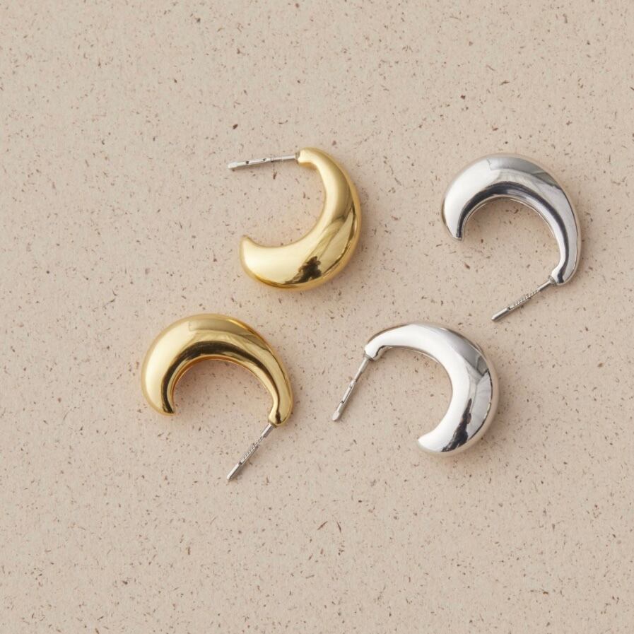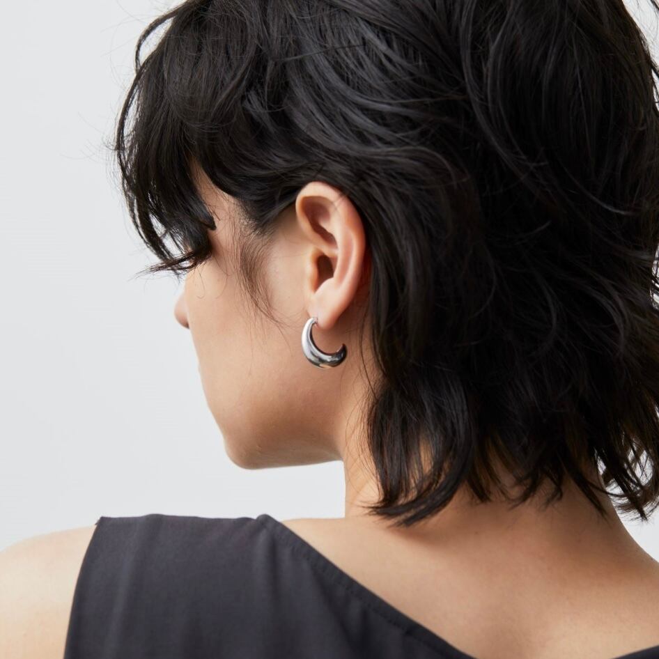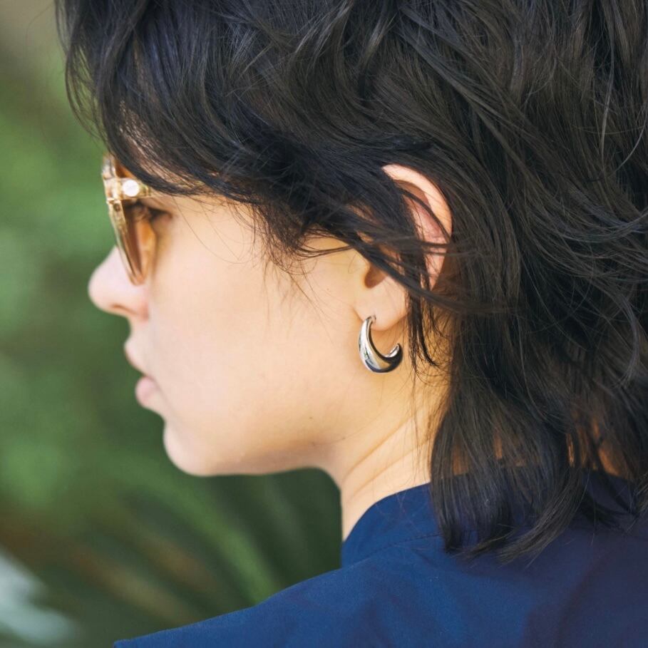 なめらかな曲線のフォルムとふっくらとしたシルエットが魅力のフープピアス。程よいボリュームで存在感を出しつつも、中を空洞にすることで軽いつけ心地を実現。耳元で上品に揺れ動く女性らしいデザインが顔周りを華やかに。シンプルでシーンやスタイルを選ばず、デイリーに取り入れやすいデザインです。