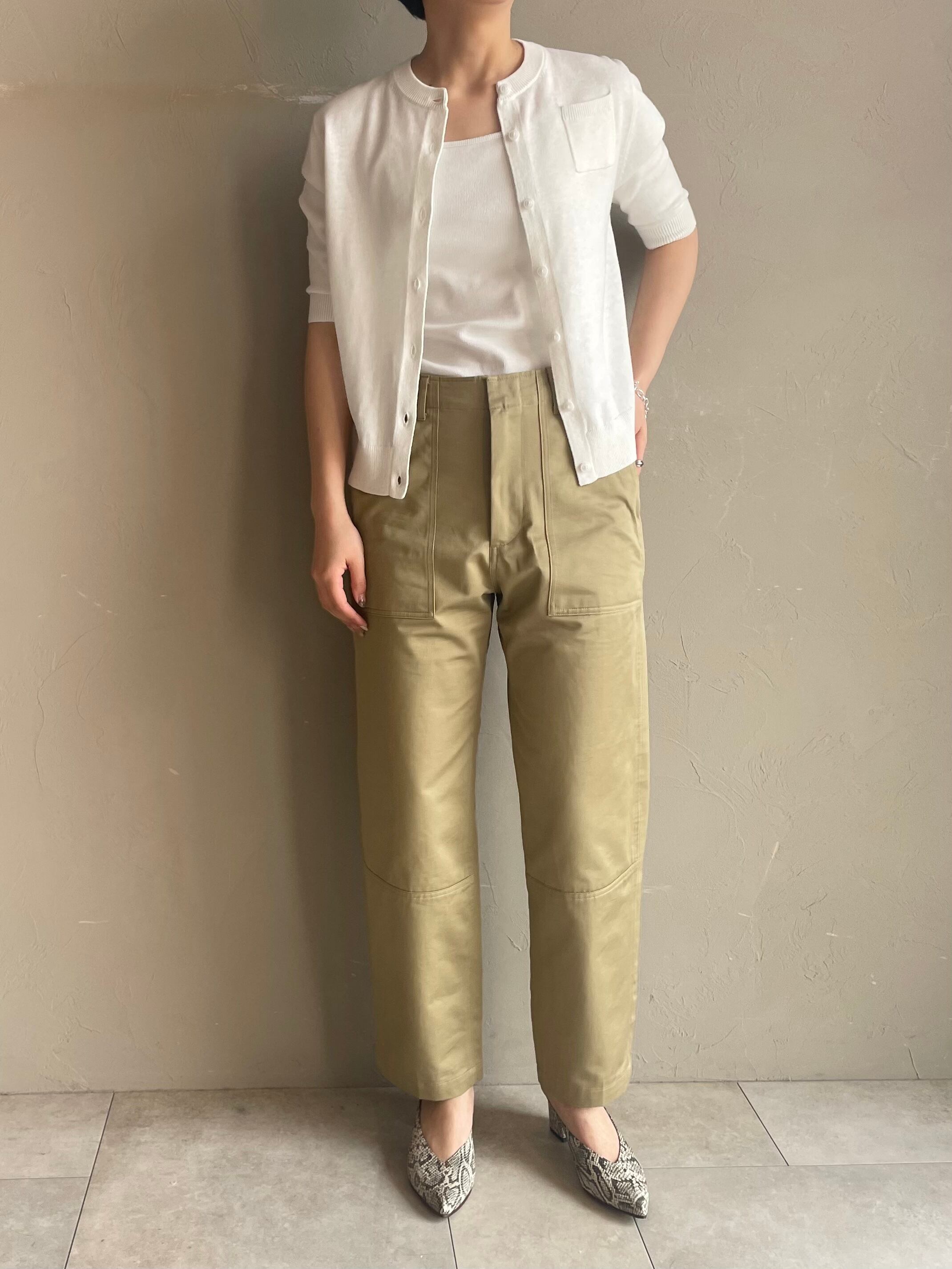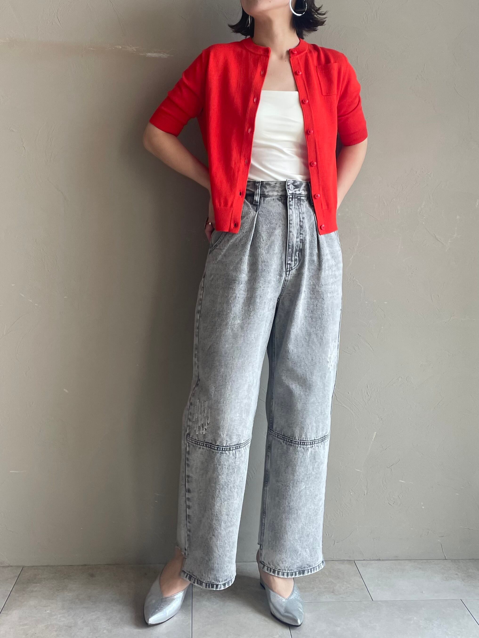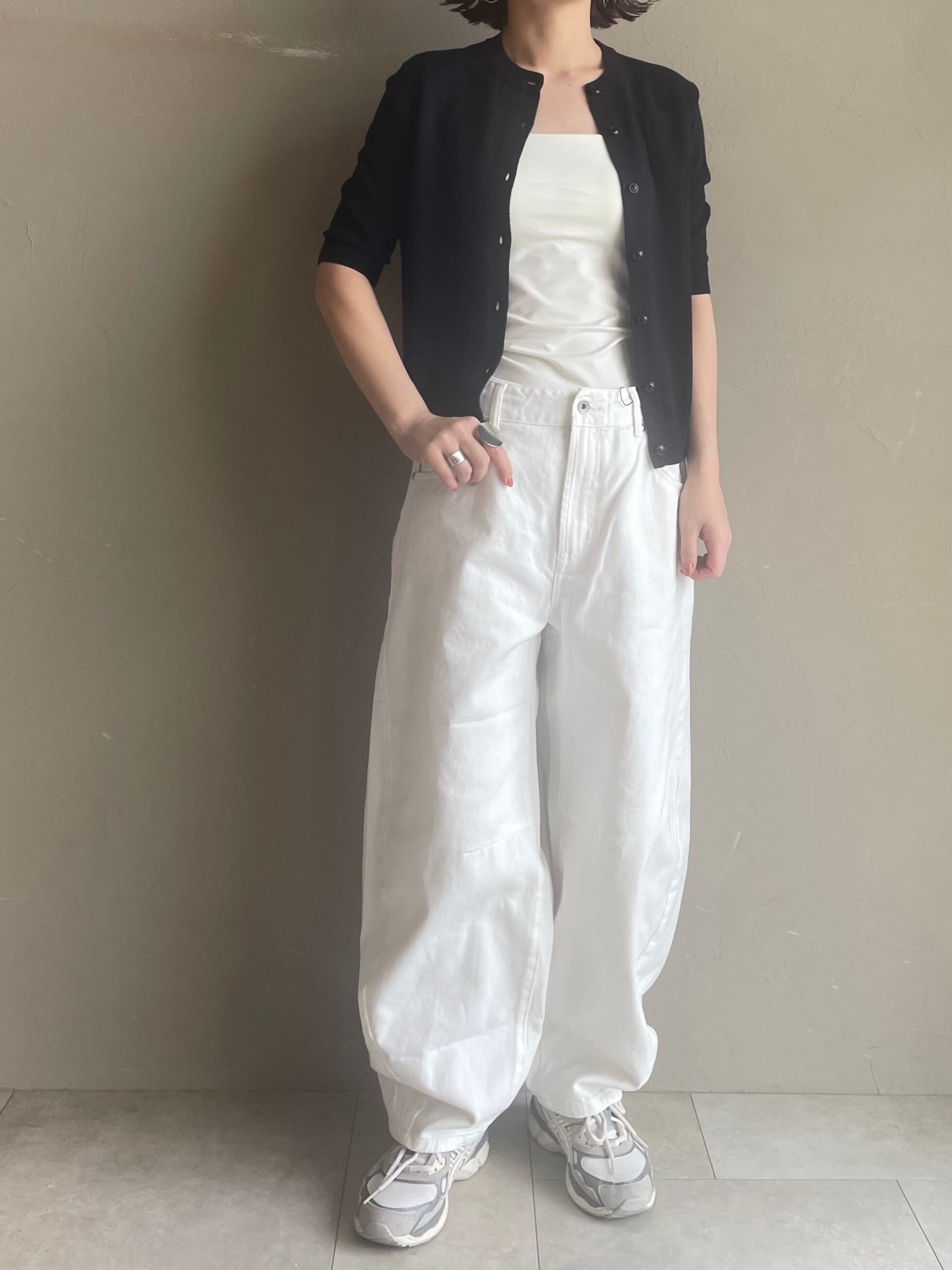 5部丈にすることでコンサバすぎず、カジュアルにデニム合わせなども◎。