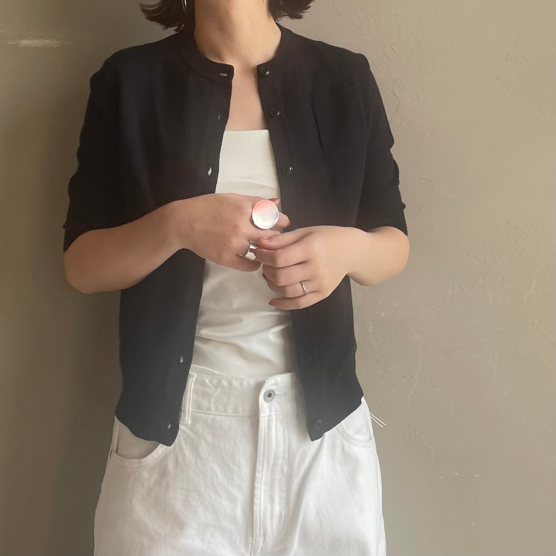 トップスとしても可愛いハーフスリーブのカーディガン。