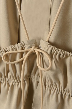 胸当てからウエスト周りにかけてギャザーがあり、雰囲気のあるアイテムになっています。