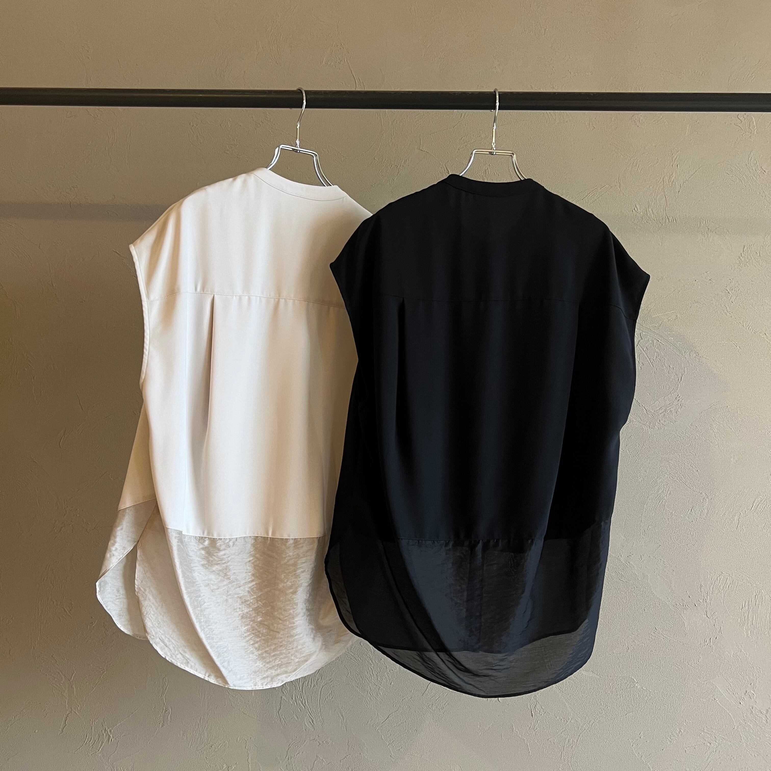 ・落ち感のあるジョーゼットを使用した、フレンチスリーブのシャツ