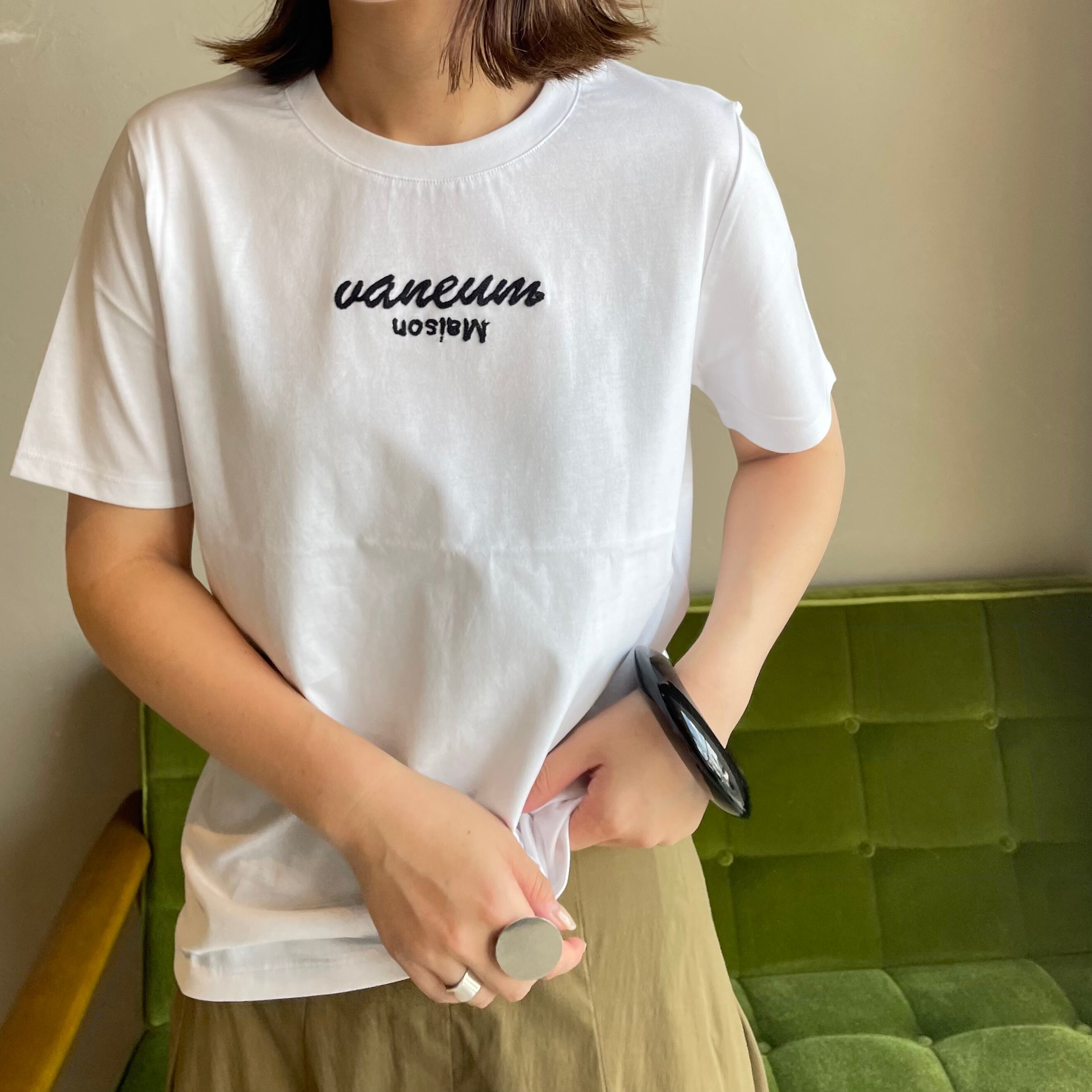 ・maison vaneumロゴをチェーン刺繍にて施したTシャツ