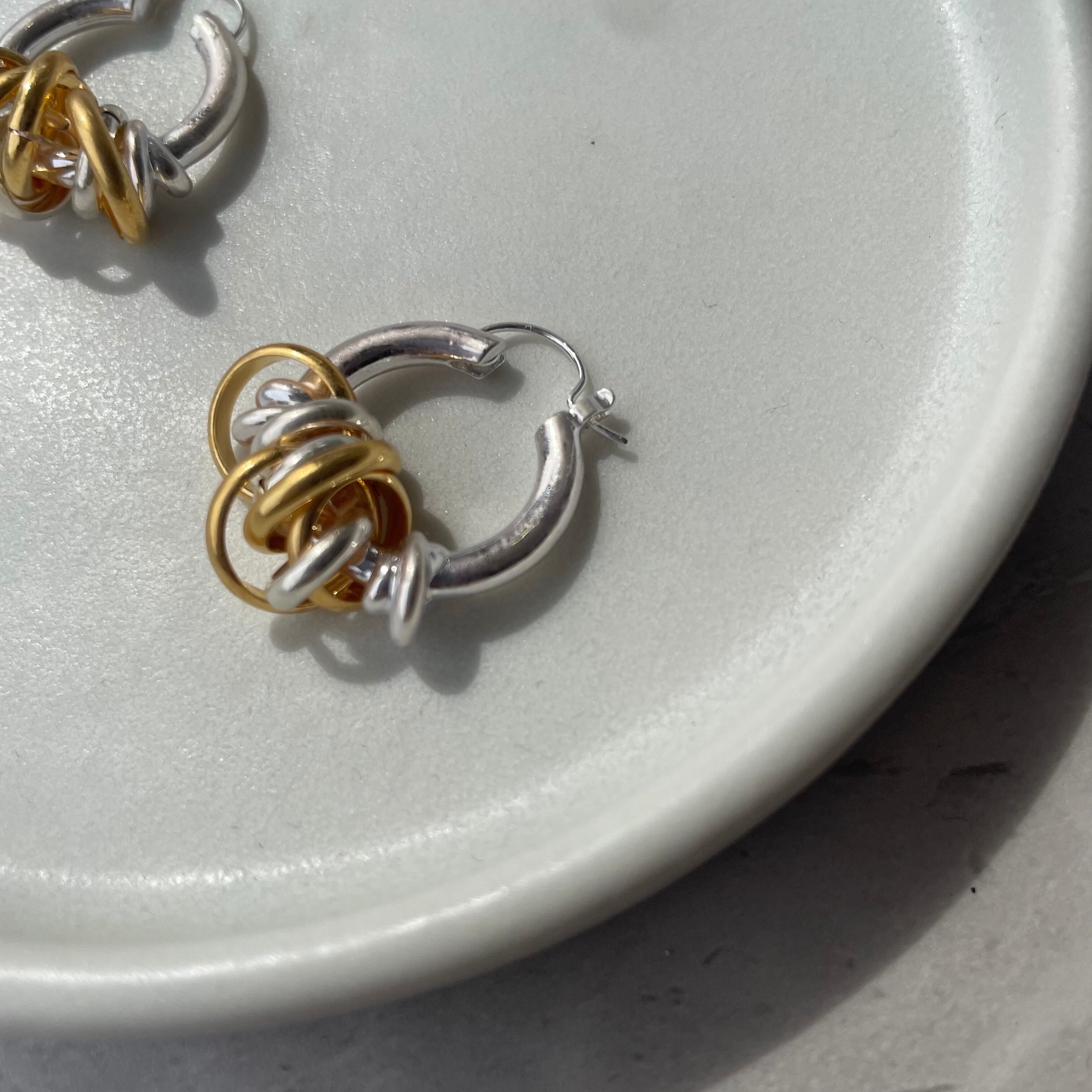 ・一見じゃらじゃらとしたデザインですが、フープに通されたコイルは固定されており耳元で邪魔になりません。