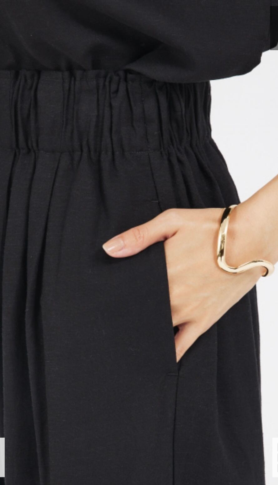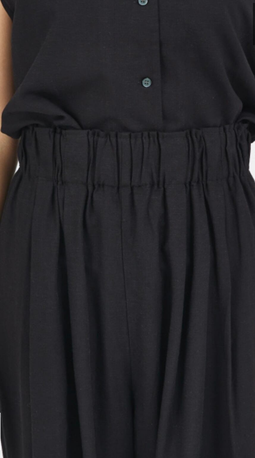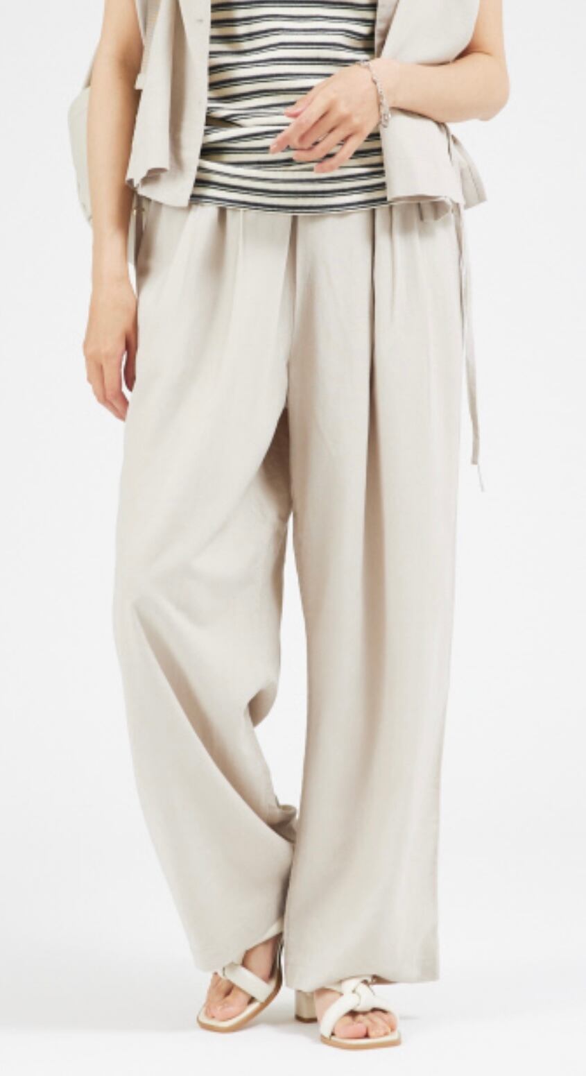 清涼感があるリネン混のワイドパンツ。タックのように立体感を持たせたウエストゴム使用でこれからの季節に嬉しいリラックス感のある履き心地です。柔らかく動きのある素材感は程よい女性らしさも演出します。