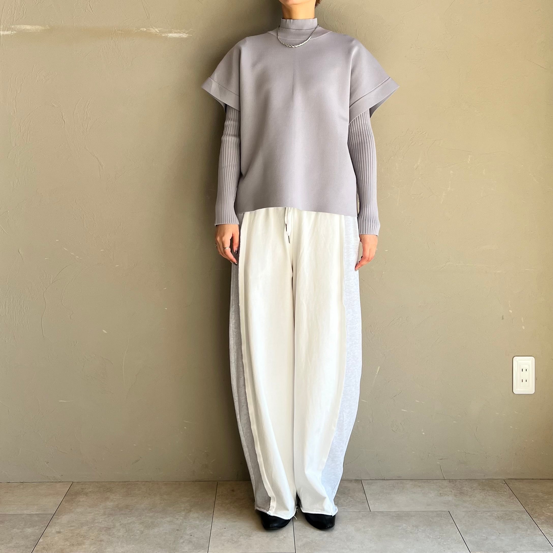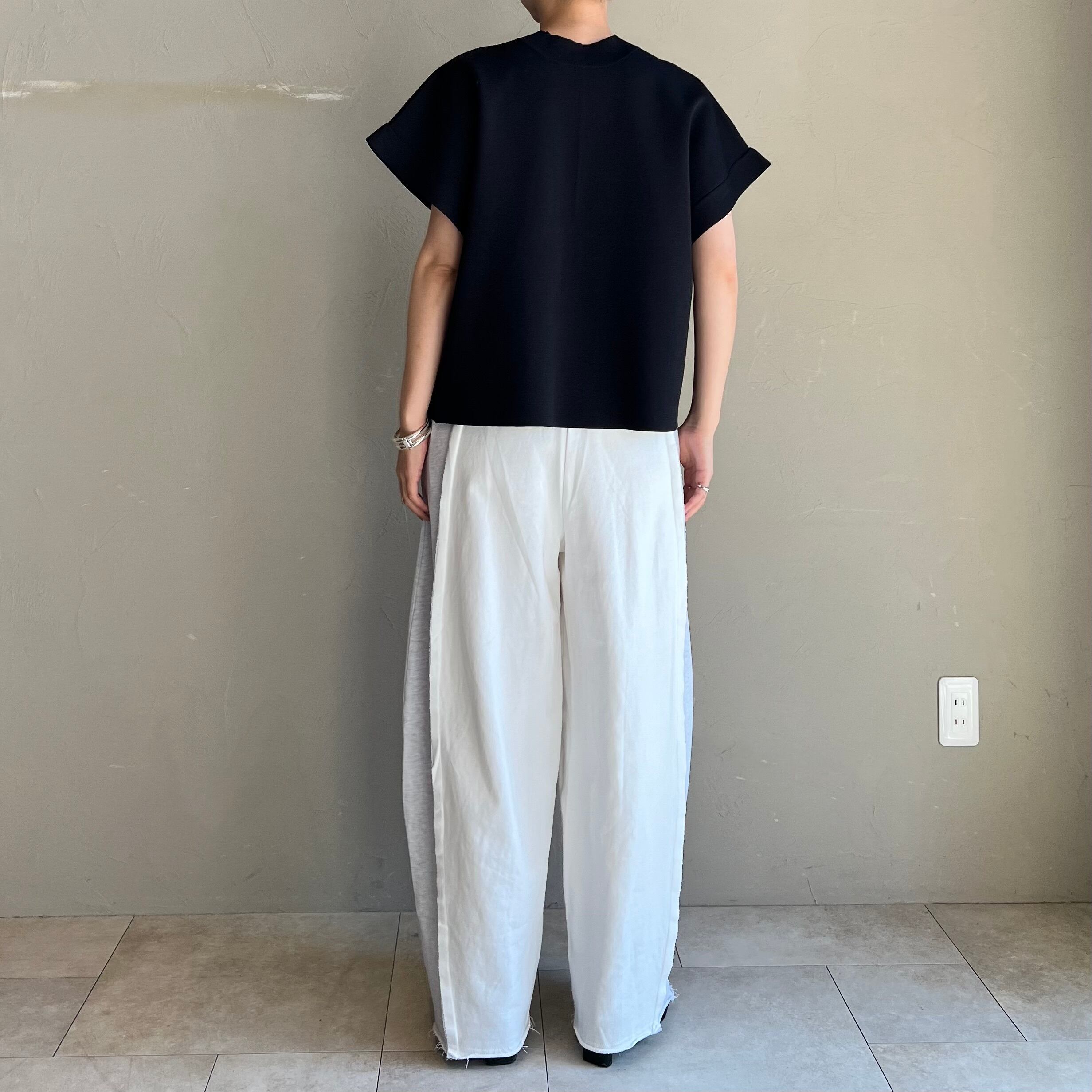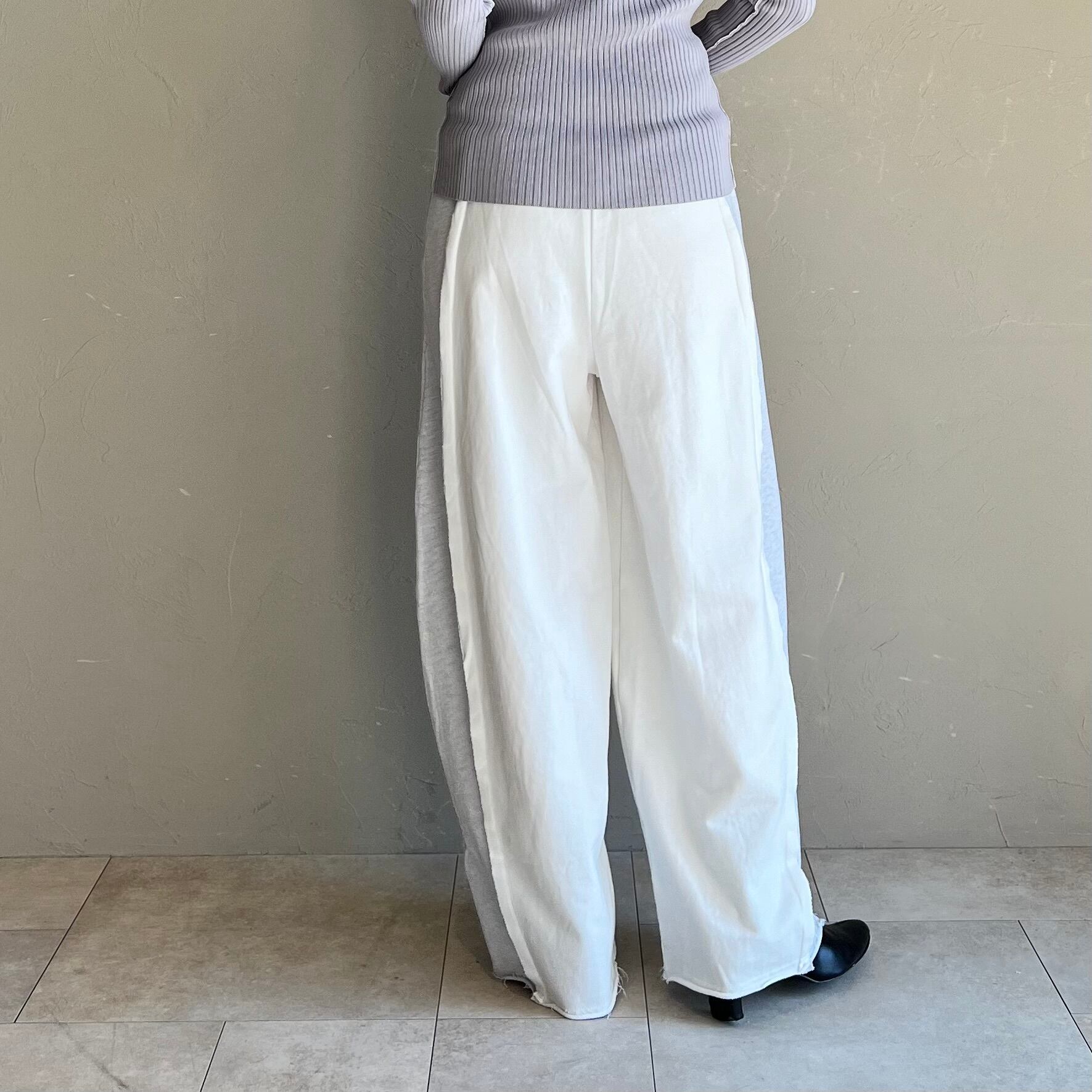 ドライタッチのコットン100%のミニ裏毛をバイカラーで切り替えたコクーンシルエットのスウェットパンツです。ウエストゴムのすとれすふりーな履き心地で、適度なボリュームが抜け感を演出します。ムートンやジャケットに合わせて、上質なハイカジュアルスタイルにおすすめです。