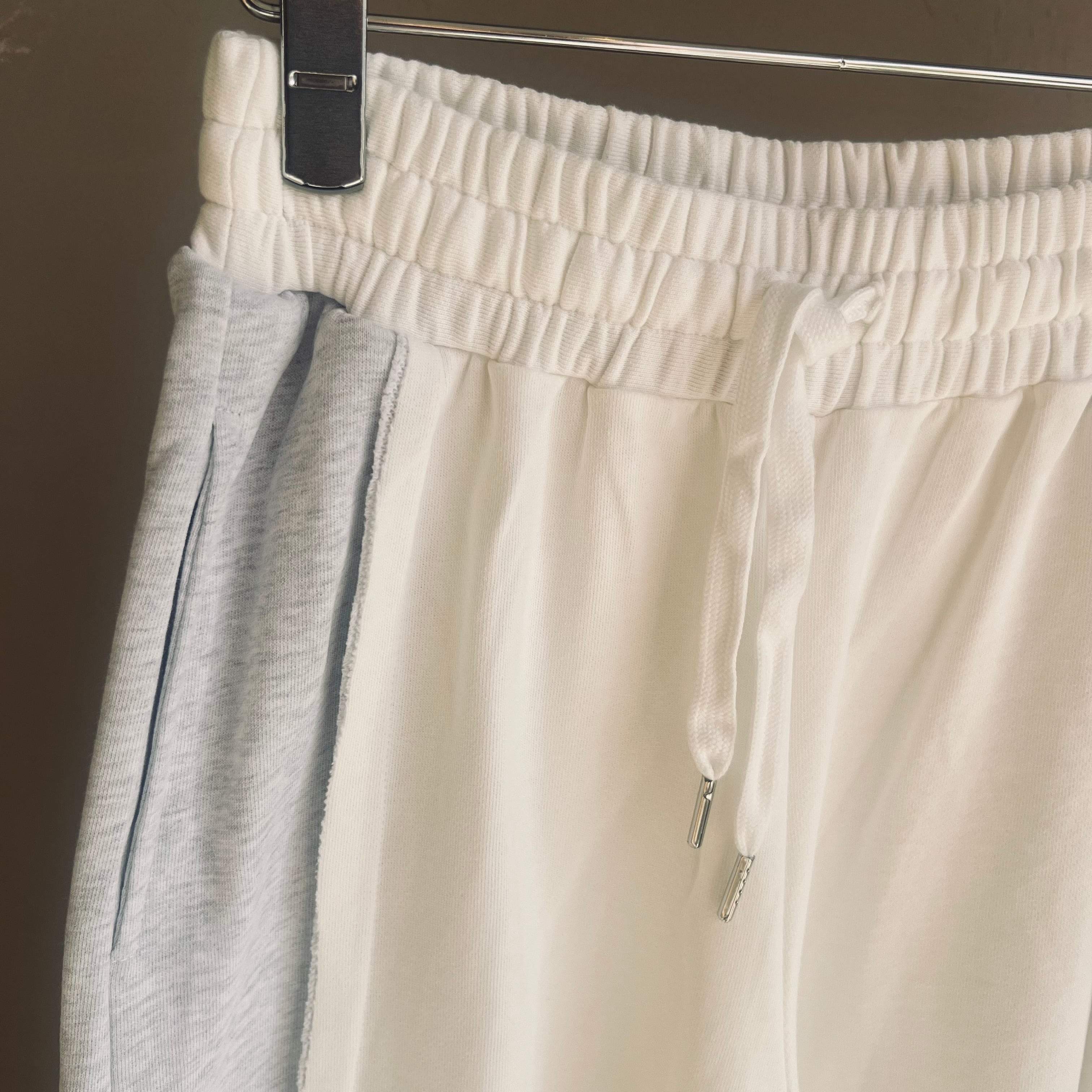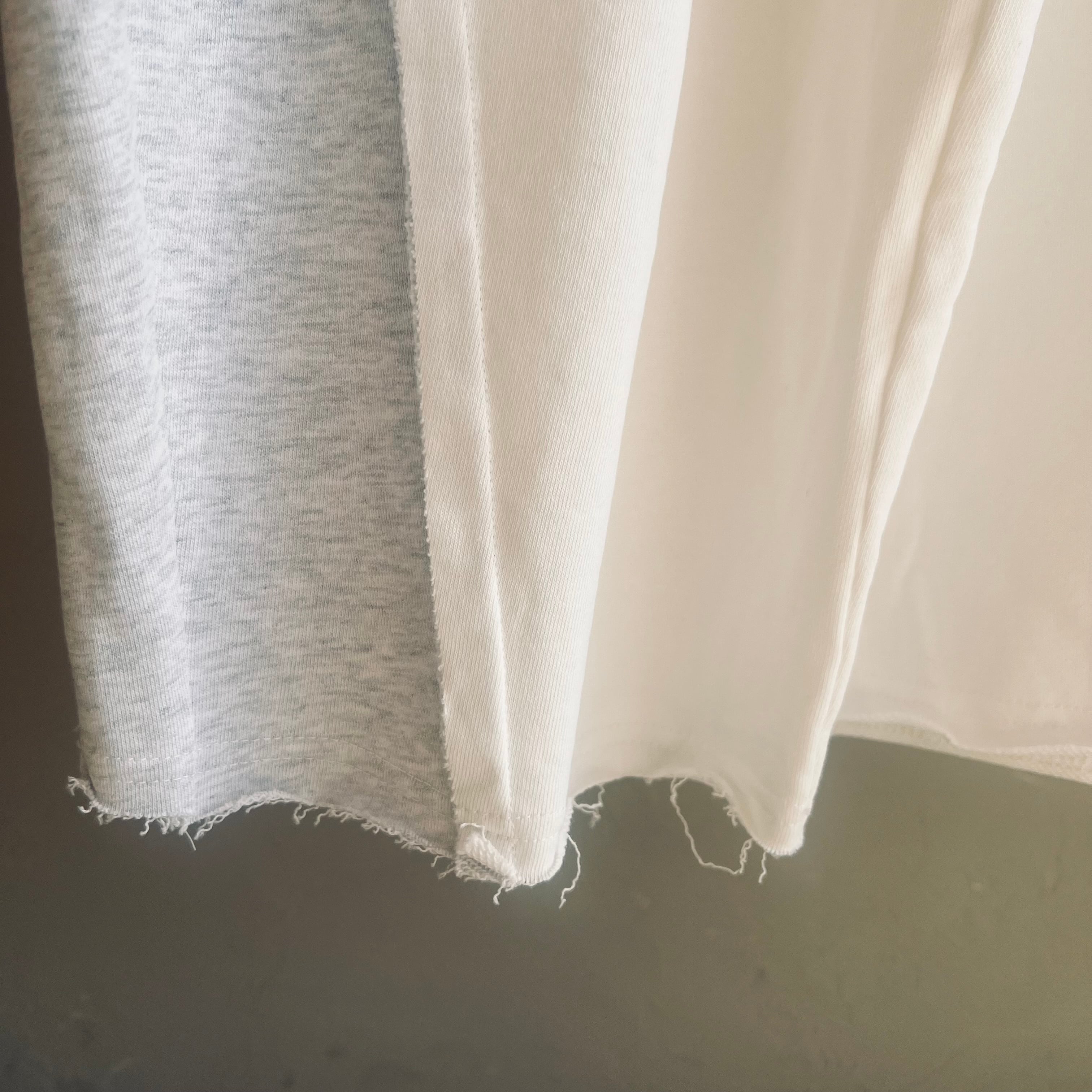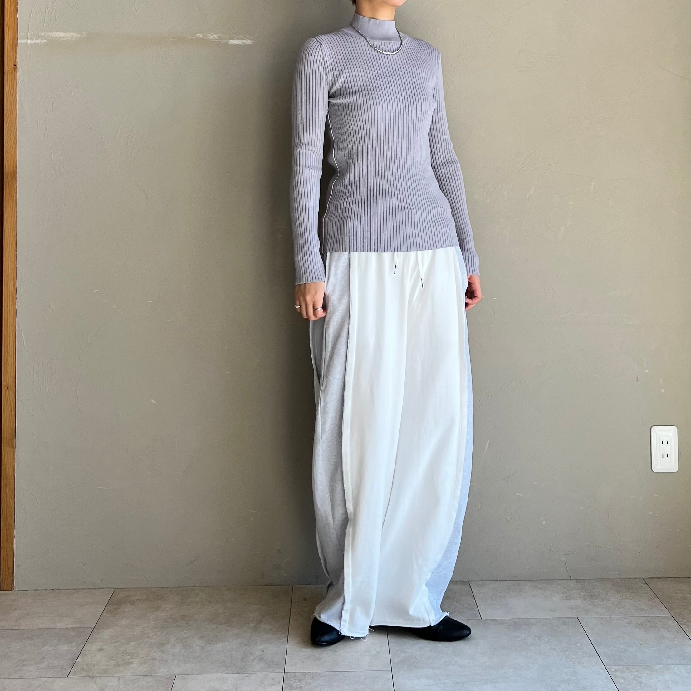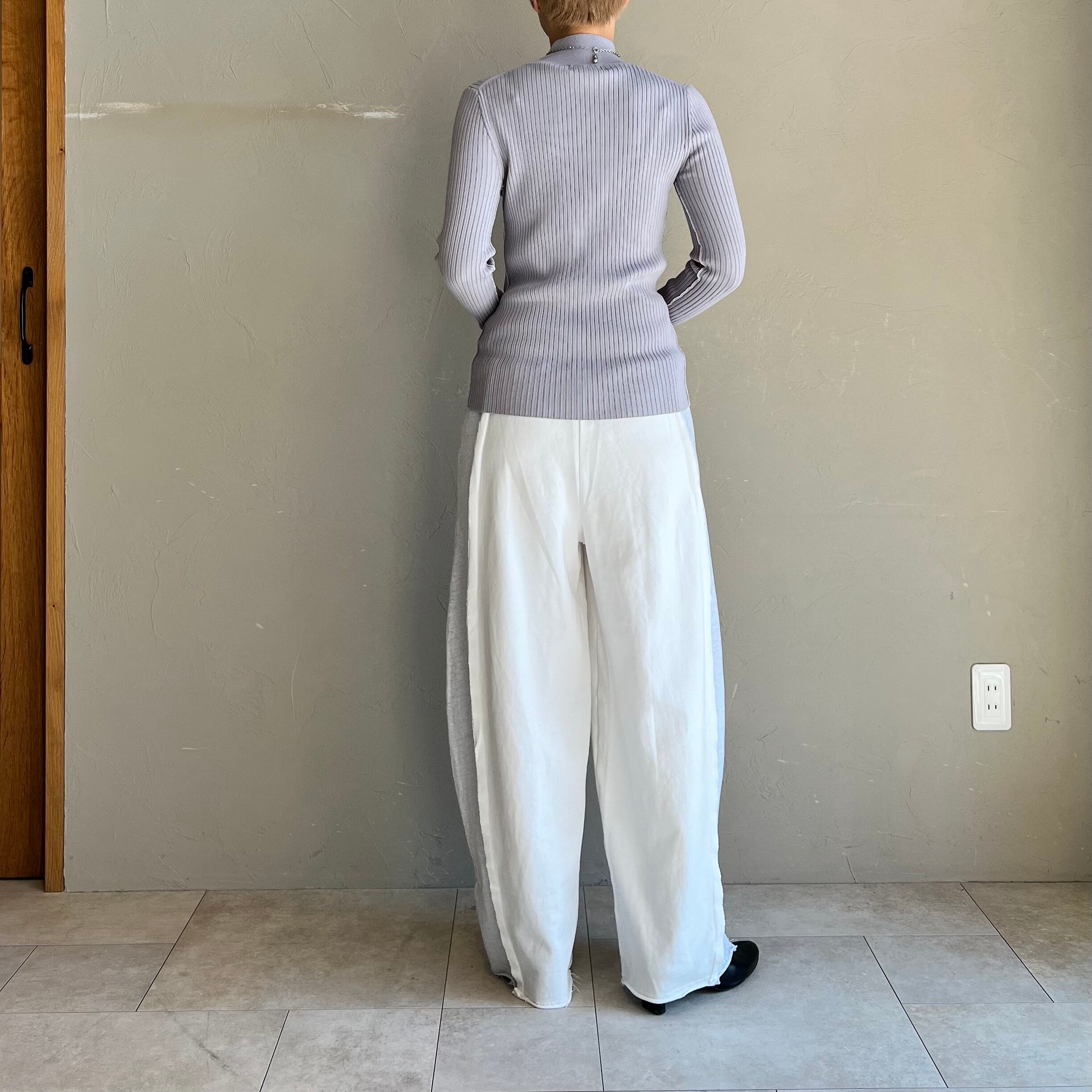 ドライタッチのコットン100%のミニ裏毛をバイカラーで切り替えたコクーンシルエットのスウェットパンツです。ウエストゴムのすとれすふりーな履き心地で、適度なボリュームが抜け感を演出します。ムートンやジャケットに合わせて、上質なハイカジュアルスタイルにおすすめです。