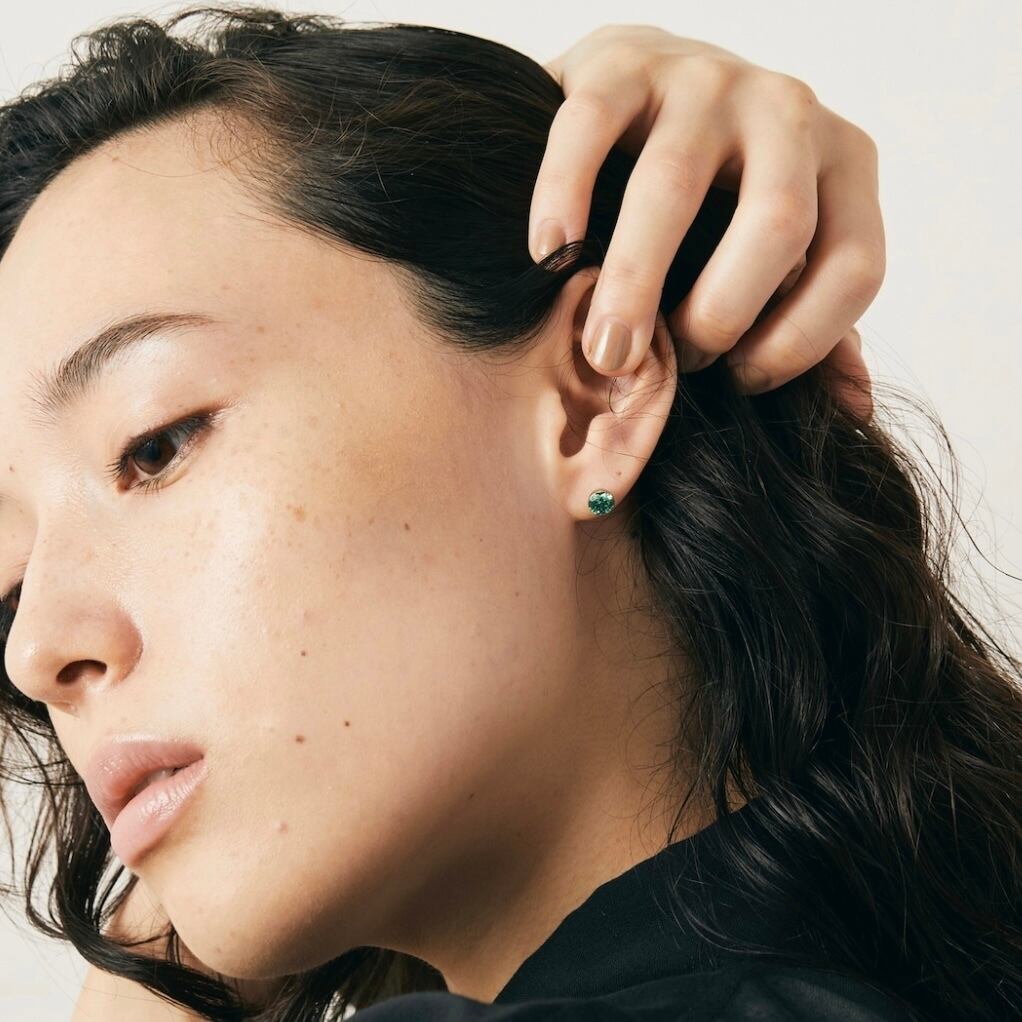 どの角度からも美しいグリーンの光で魅了する直径6mmのキュービックジルコニアを使用したピアスです。