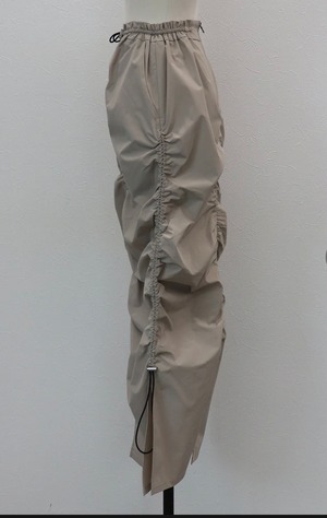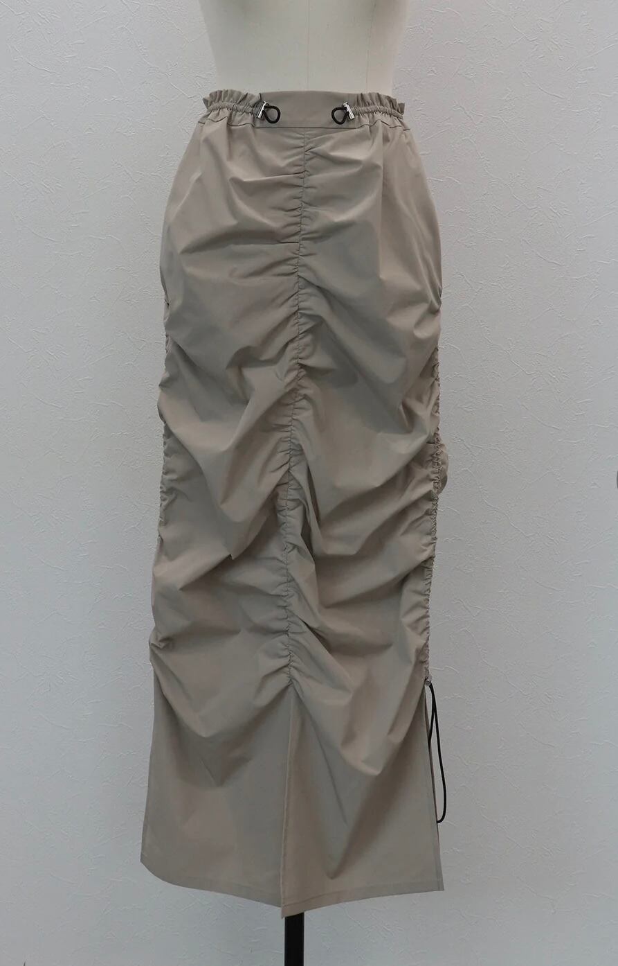 たっぷりなギャザーを施しつつも、ストレートなシルエットですっきりとした印象を与えるように仕上げました。