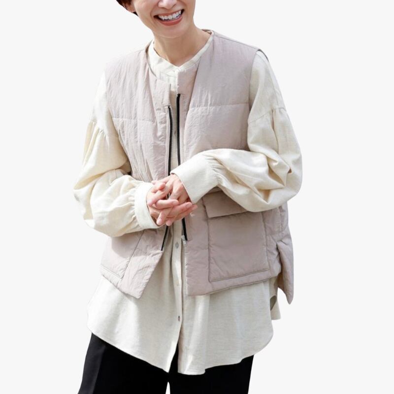 コンパクトな薄中綿ベストはリバーシブル使い可能!