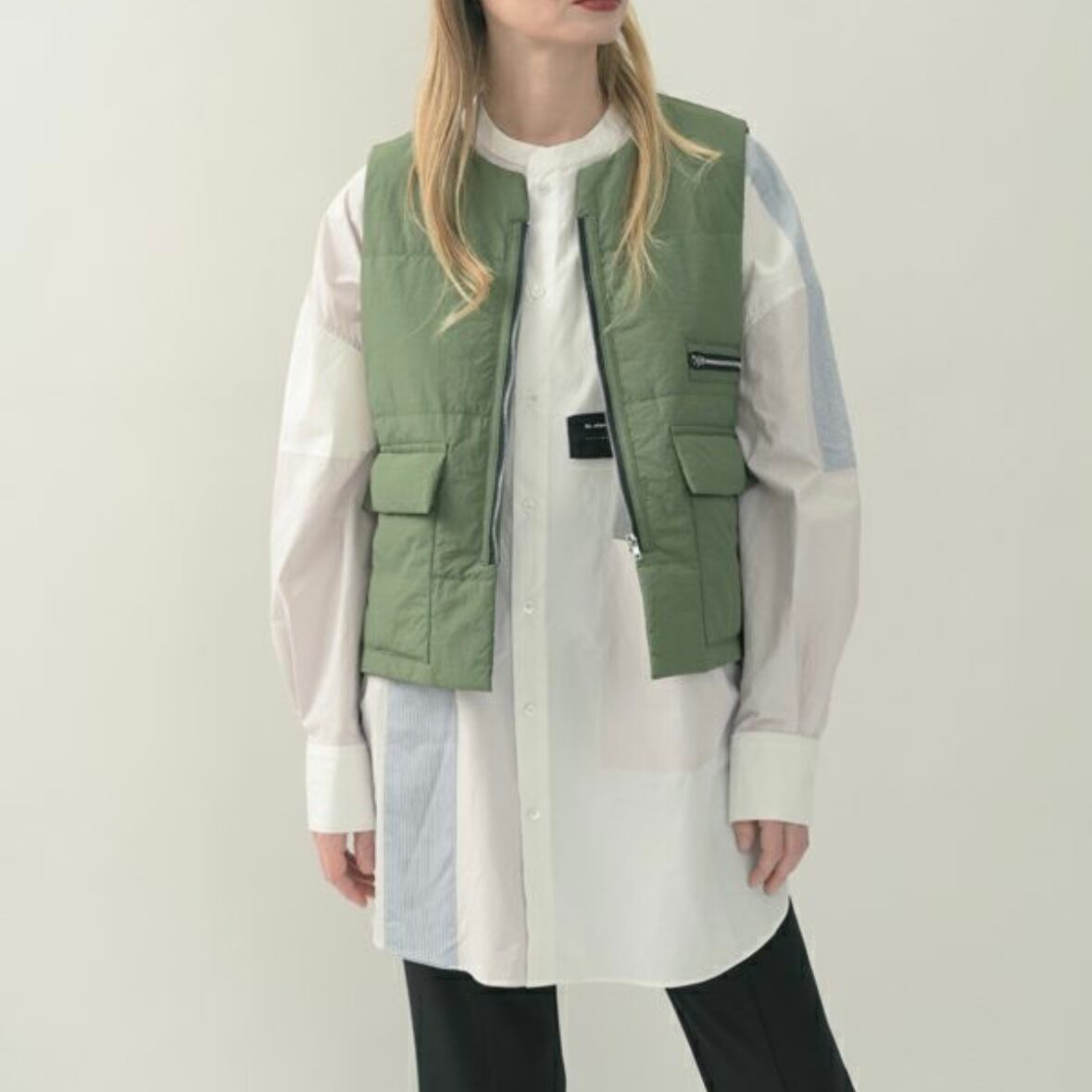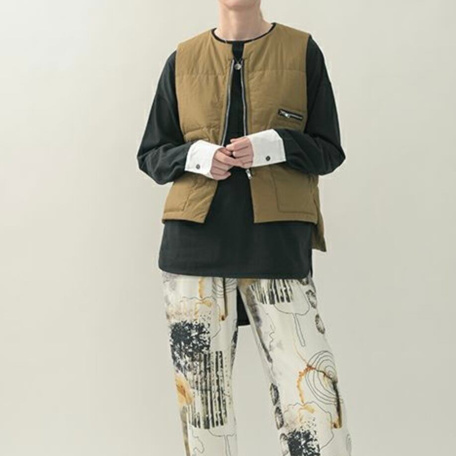 軽くて薄いけど暖かく、ベストとしてはもちろんジャケットINも出来るので、シーズン通して着装期間が長いのがポイント。ロットナンバーデザインのロゴプリントが着用の仕方で表側にも内側にもなるのでスタイリングに合わせた着こなしが出来ます。