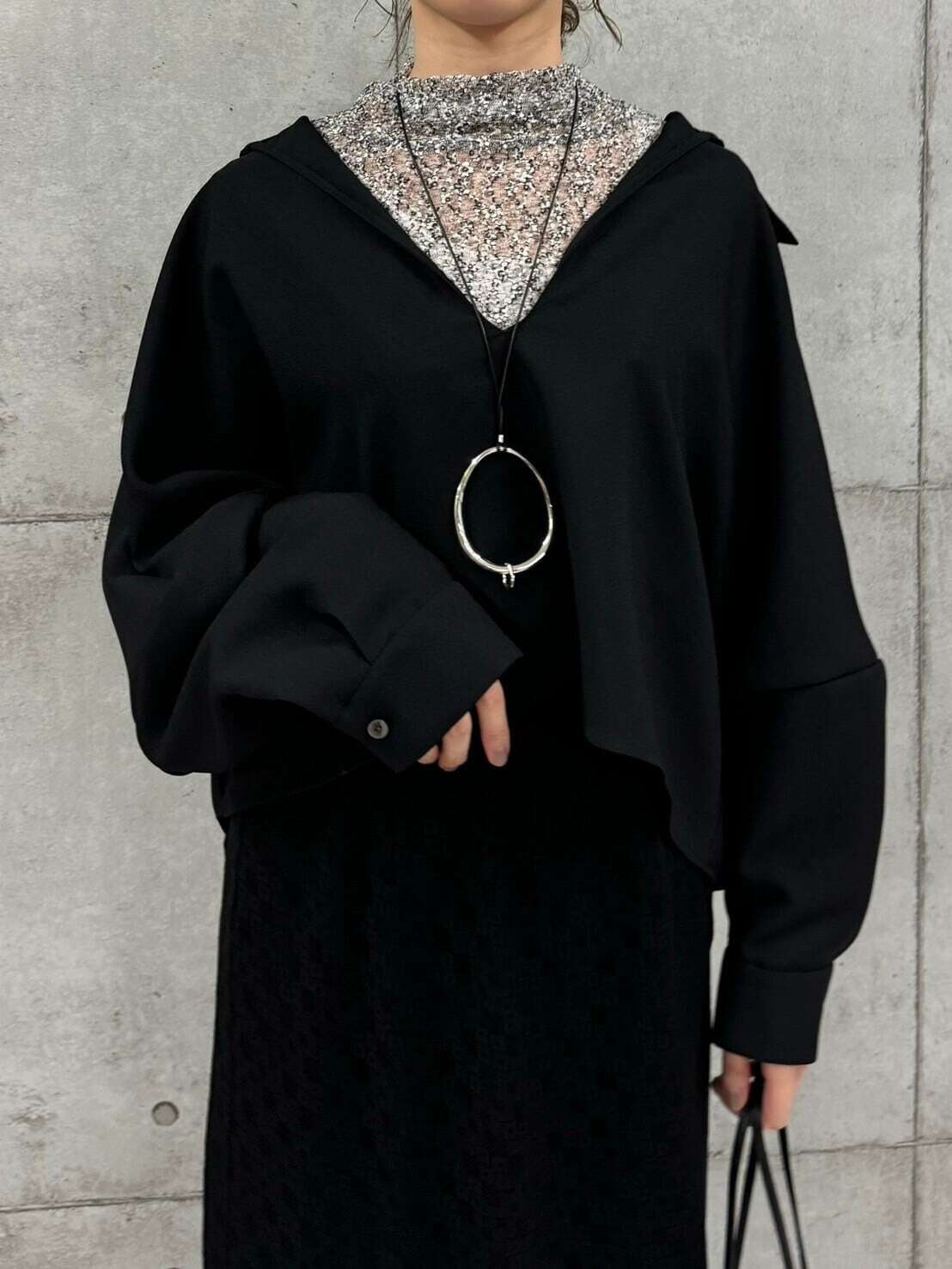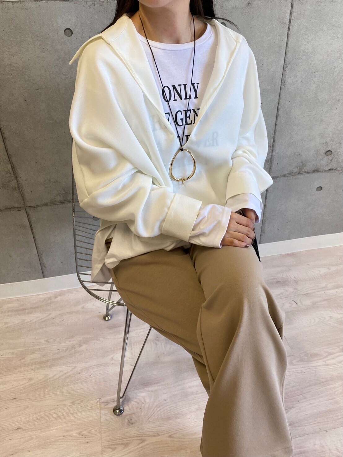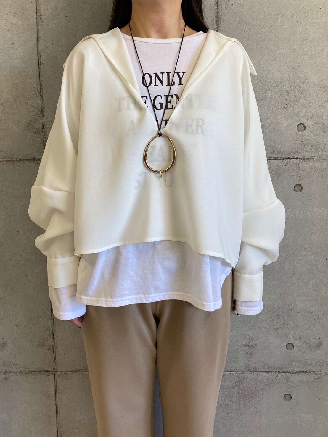 丈は短く、ドロップショルダーや広い袖口など、これを一枚レイヤーすることでスタイルアップ効果が期待できます。