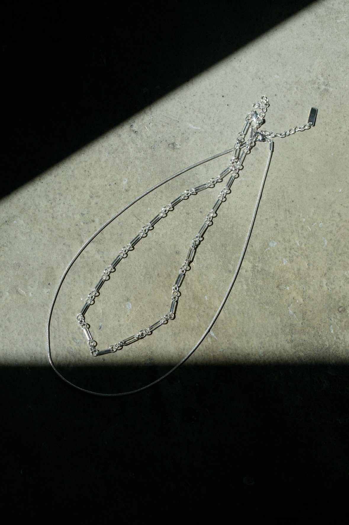 異なるデザインのチェーンのネックレスがセットになったダブルチェーンネックレス。