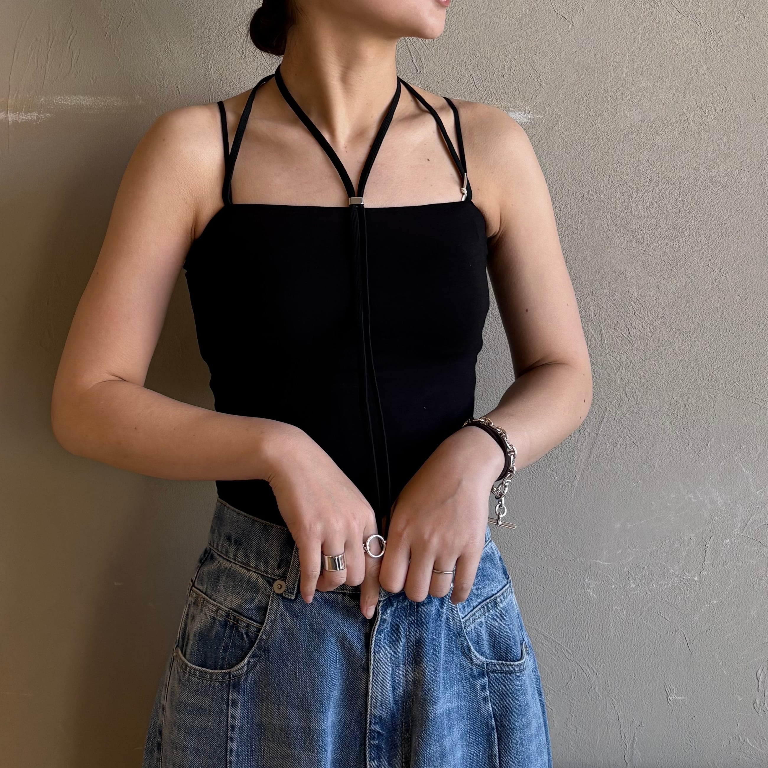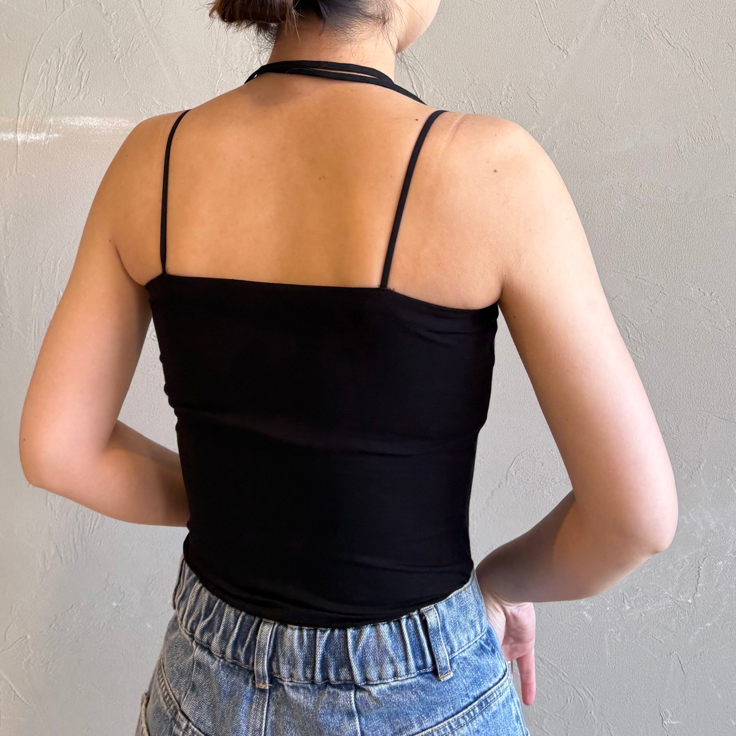 チョーカーが付いたトレンド感のあるカップ付きキャミソール。