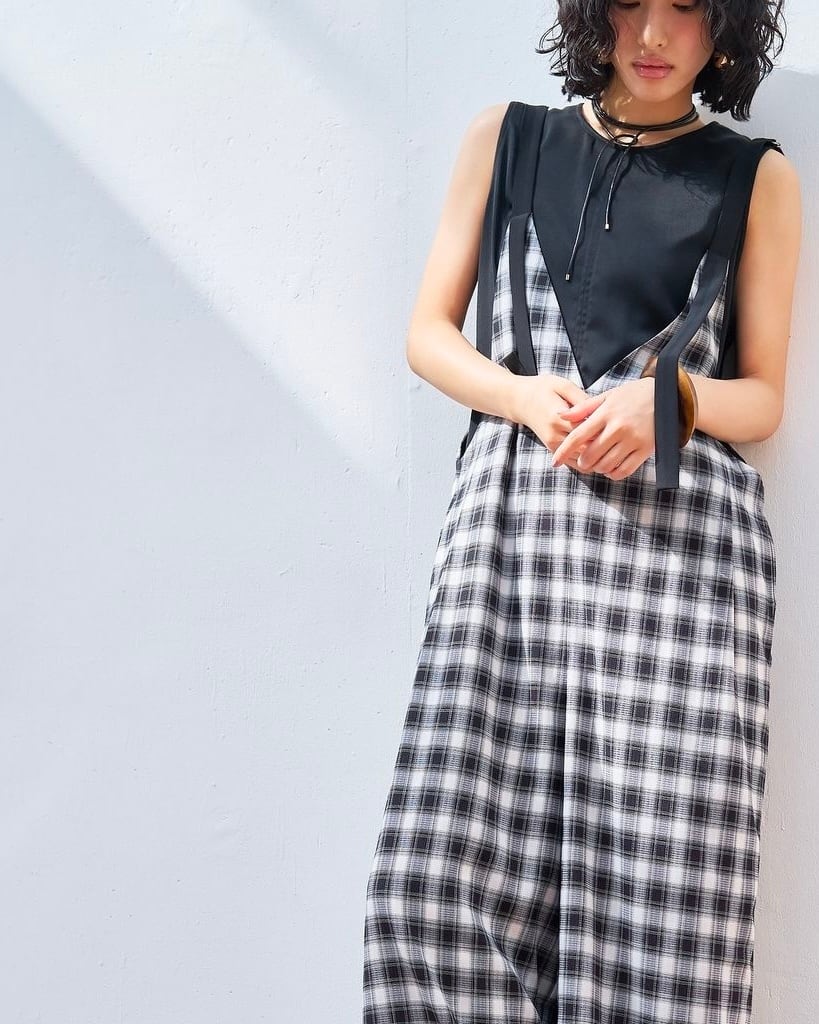 サテン生地を使用したタンクトップ型インナーです。後身頃にリブ生地を使用、一見ブラウスのように見えるすっきりとしたサイズ感のインナーとして着用いただけるトップスに仕上げました。カットソーのタンクトップとは一味違う、ランクアップしたタンクトップの提案です。光沢が控えめのマットサテン生地を使用。肌触りは滑らかでエアリー、ふわふわとした感触が特徴です。ジャケットやニット等、幅広いアイテムのインナーにおすすめです。